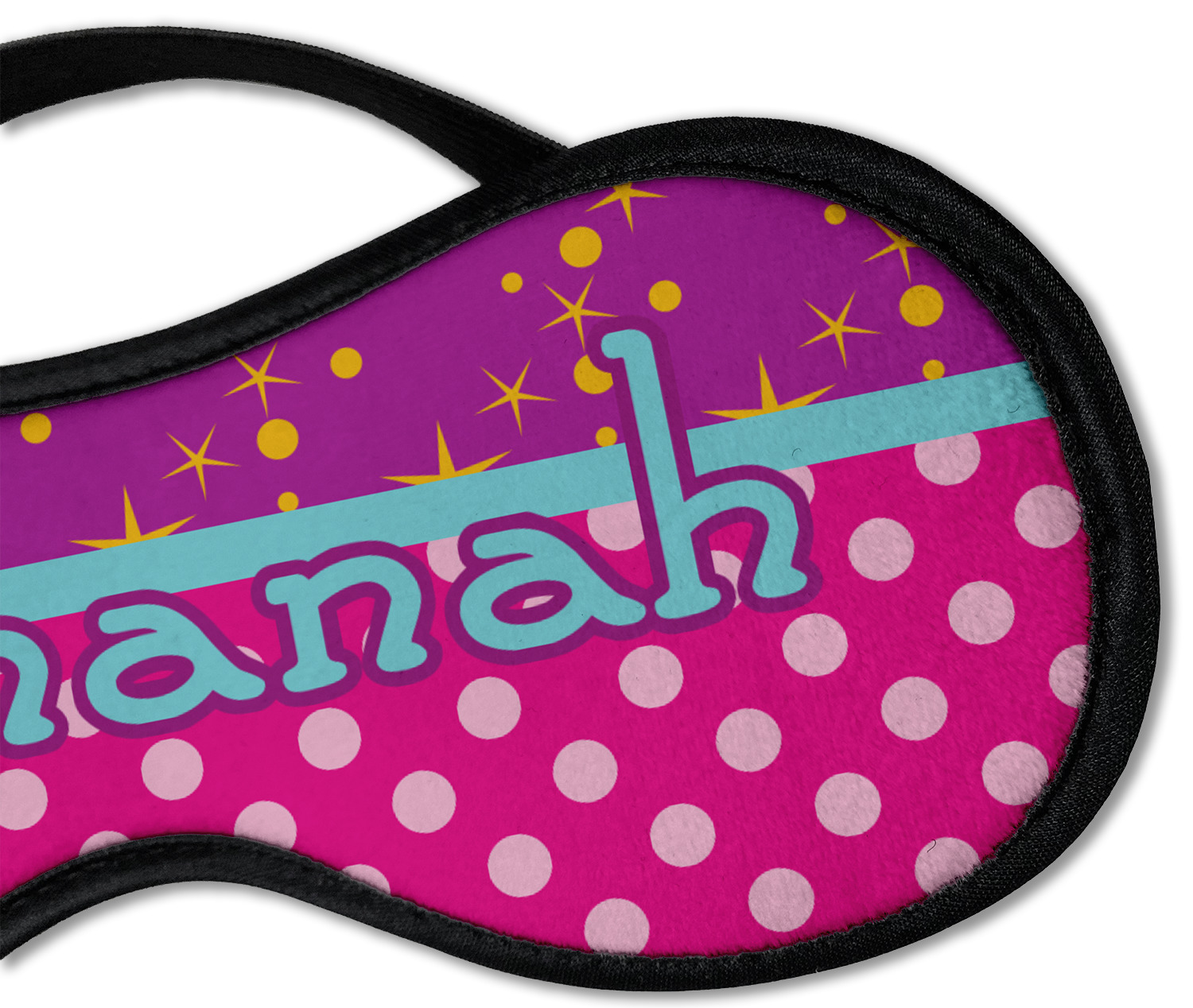 This eye mask has a super soft fleece on the back so that your face will feel snug. The front is personalized by you! There is a black elastic band that goes behind your head. The band is stretchy enough to be a one size fits most. The eye mask comes in 2 sizes: small for regular adult sizes and large for a larger area coverage. The black lining and elastic give it a nice finished look. You will never sleep or nap more comfortably than with this eye mask. These are great for napping when traveling or just at home!