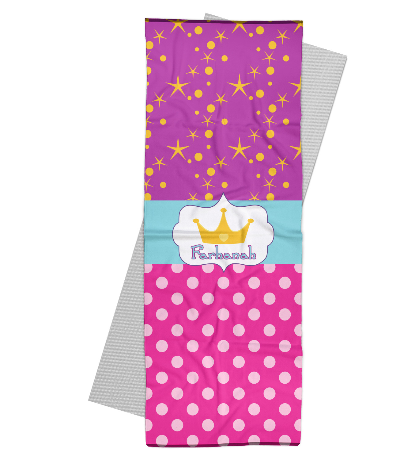 This gorgeous yoga mat towel is printed with your own design on the front with a grey colored back. They are the perfect thing to take with you to a yoga class where you use community mats. No need to worry about someone else's sweat left behind! They also give you a little extra grip on your mat, especially for when you do a hot yoga workout! They measure at approximately 24" W x 68" H. They are the perfect thing for your regular yoga classes or workouts.