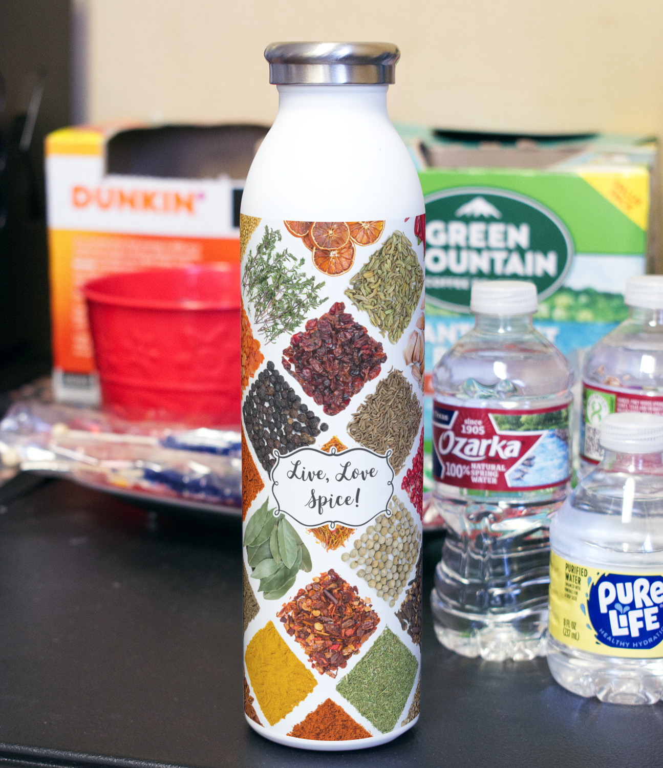 Design your bottle and we will print your design with a UV stable ink so it will not fade over time. After printing the design we apply a clear coat over the print to ensure its durability will stand up to rough every day use.