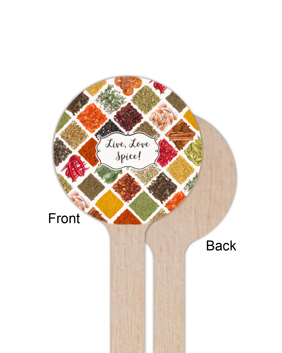 The words "Live, Love, Spice" are featured in a curly frame in the middle of this design. You can easily customize the words to your liking. We have other herb & spice patterns in our library - so feel free to browse and use the pattern that appeals to you. Let us know if there is anything that we can help you with.
