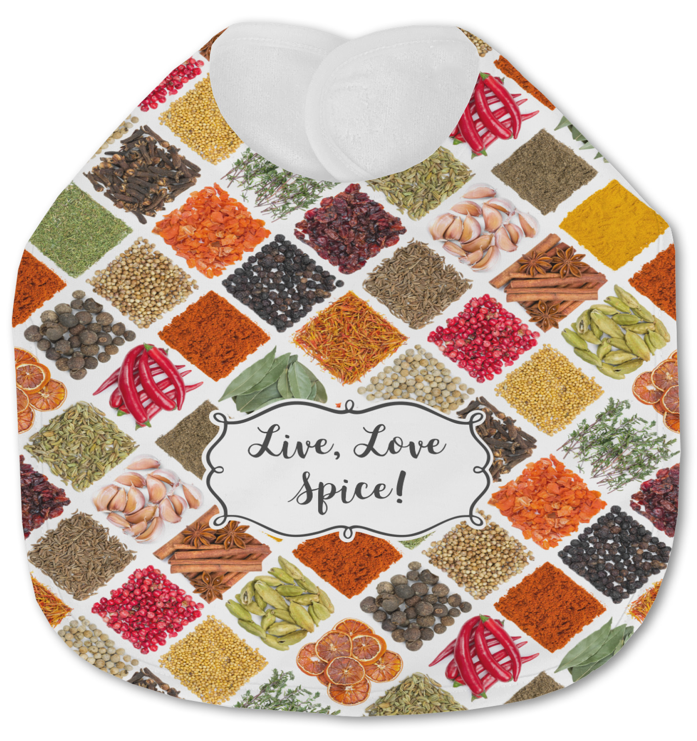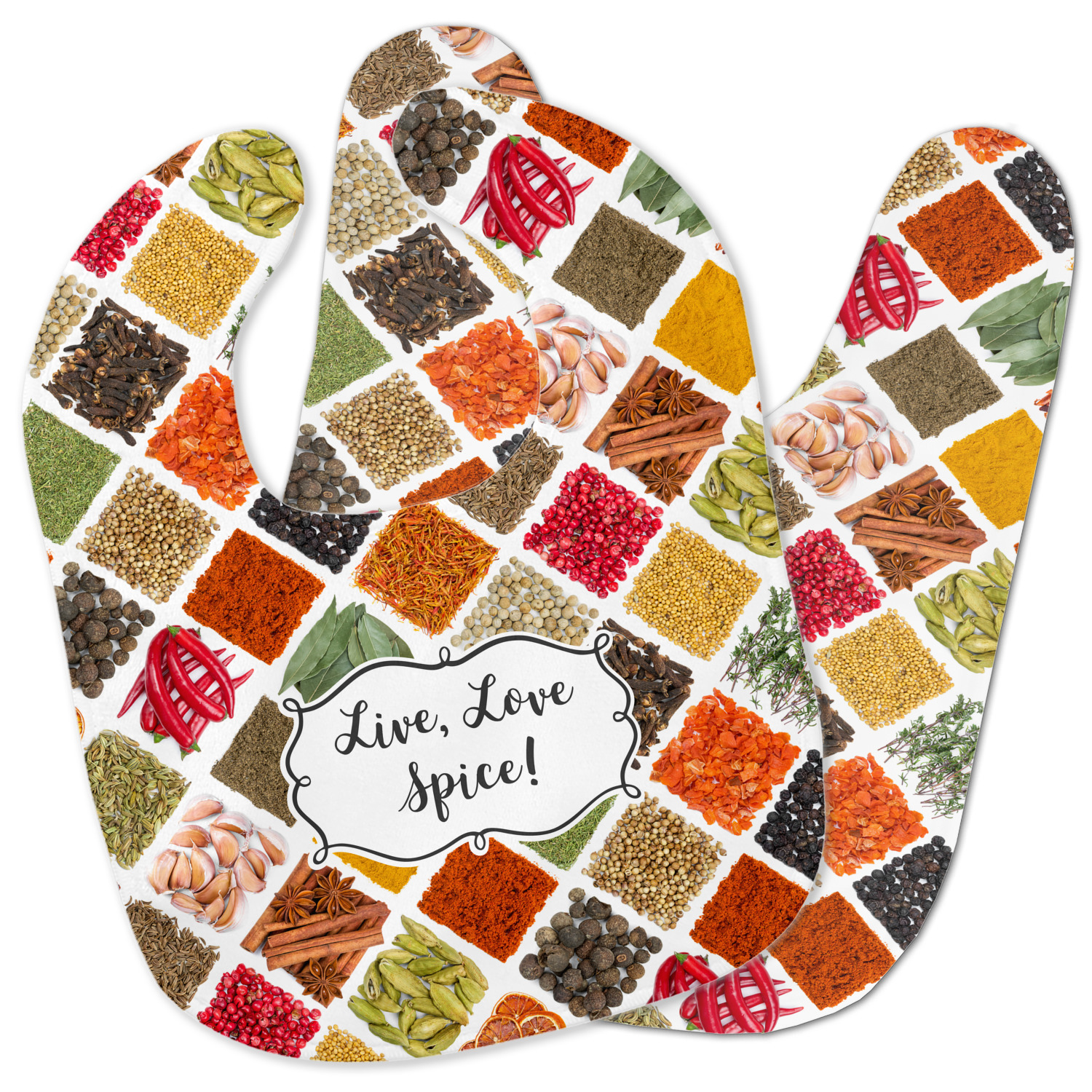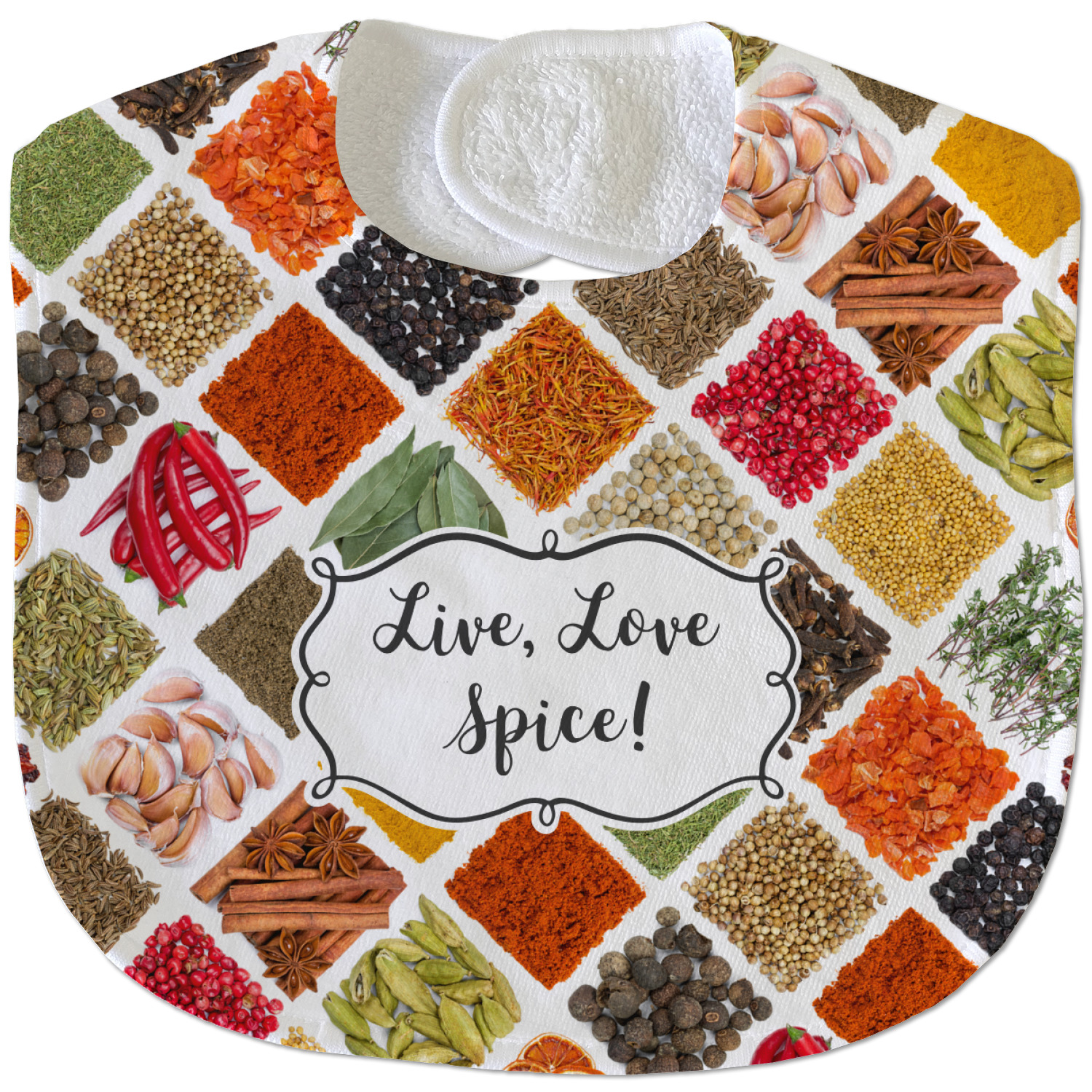 The words "Live, Love, Spice" are featured in a curly frame in the middle of this design. You can easily customize the words to your liking. We have other herb & spice patterns in our library - so feel free to browse and use the pattern that appeals to you. Let us know if there is anything that we can help you with.