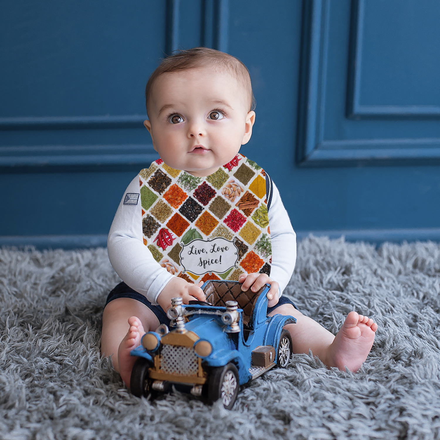 Combine this toddler bib with a variety of our other baby products, such as burp cloths, baby blankets, and baby onesies, to make a delightful baby shower gift! Or, browse from our selection of products in our Baby and Toddler section for more gifts for your own child! Customize some kid's cutlery, snack containers, or a sippy cup to make mealtime more enjoyable!