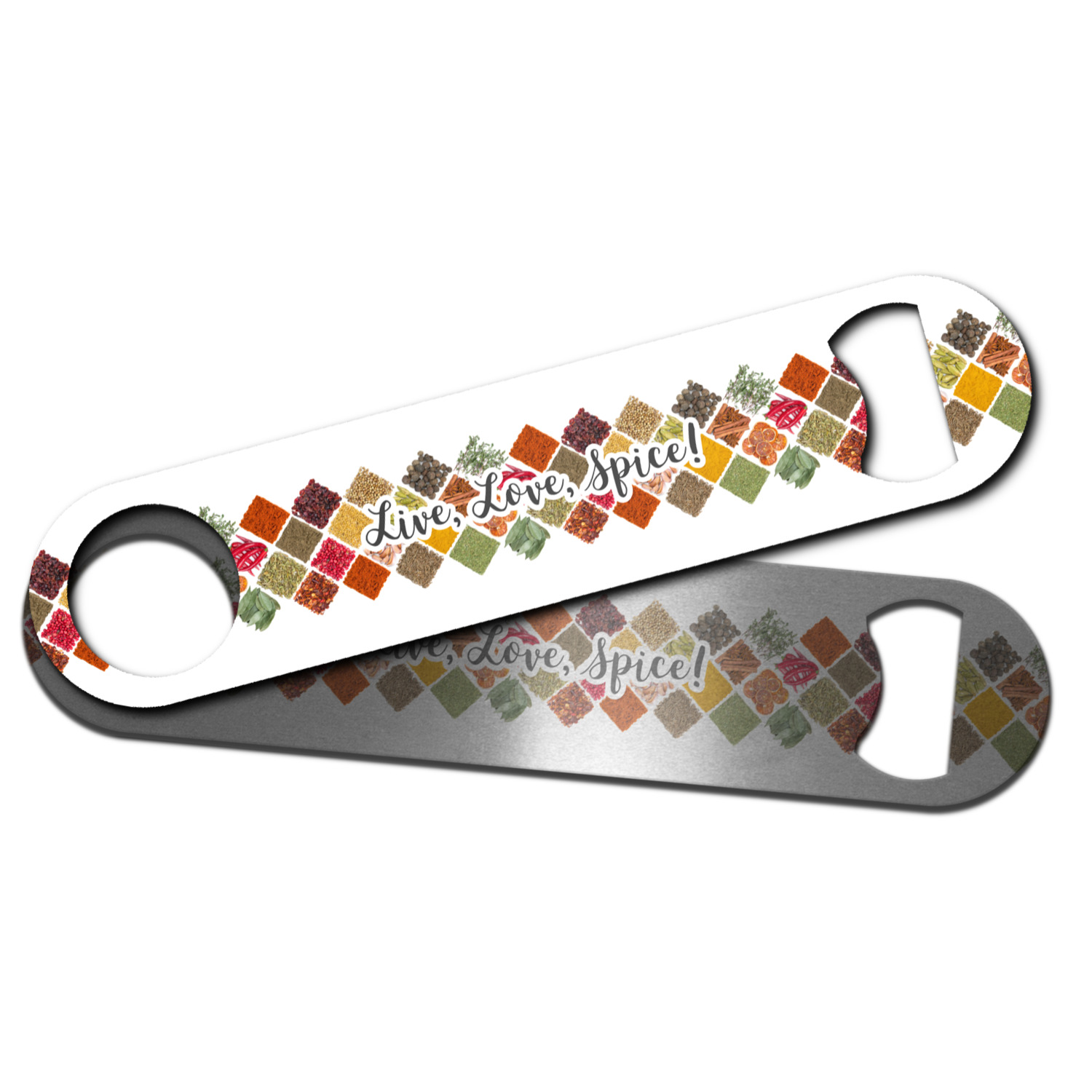 Stop struggling with the caps or your bottled beverages by purchasing one of our personalized bottle openers! These wrench-like custom bar blades are built to last. Customize one for your home's bar, or as a practical gift for a loved one!