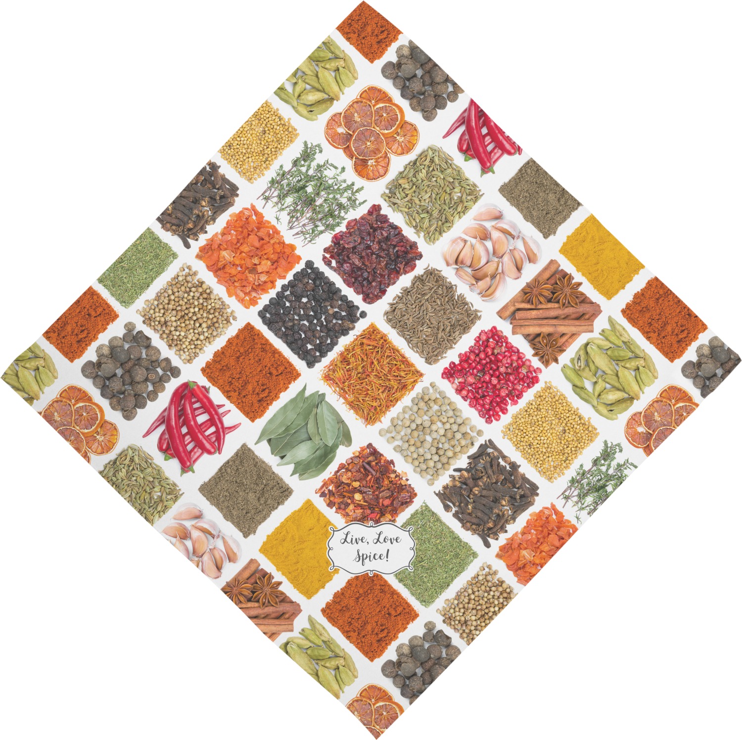 The main pattern is made of various spices such as dried thyme, white pepper, coriander, cumin, turmeric, red chili peppers and a whole lot more. The spices are all laid out in a fun diamond repeating pattern. This design simply looks stunning on any cook wear and more.