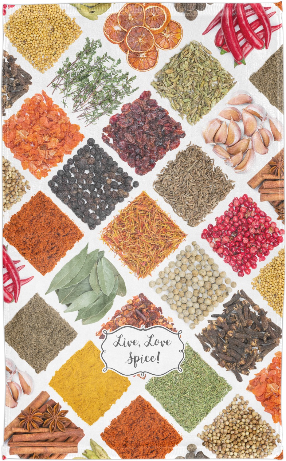 The words "Live, Love, Spice" are featured in a curly frame in the middle of this design. You can easily customize the words to your liking. We have other herb & spice patterns in our library - so feel free to browse and use the pattern that appeals to you. Let us know if there is anything that we can help you with.