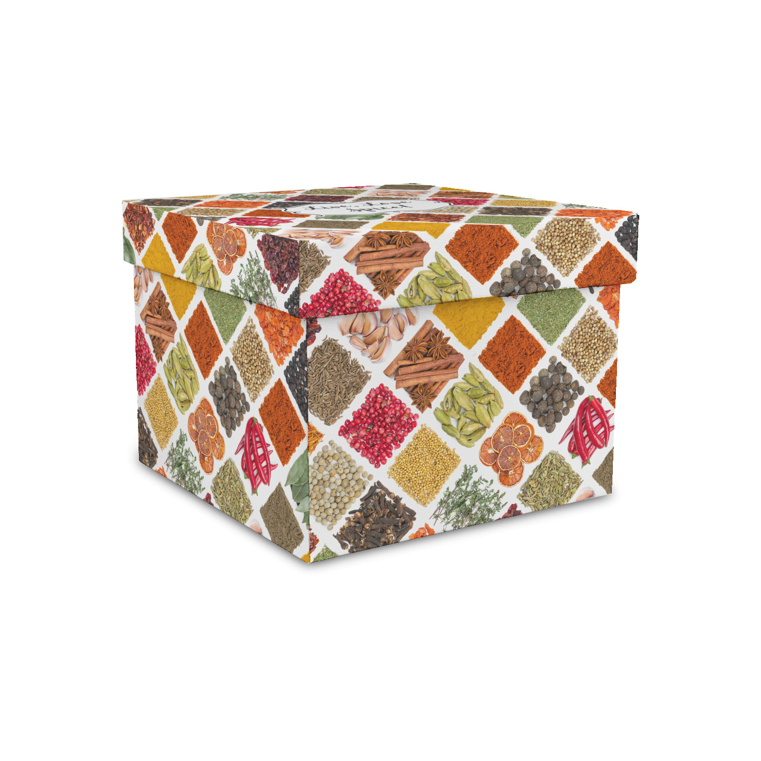 The main pattern is made of various spices such as dried thyme, white pepper, coriander, cumin, turmeric, red chili peppers and a whole lot more. The spices are all laid out in a fun diamond repeating pattern. This design simply looks stunning on any cook wear and more.