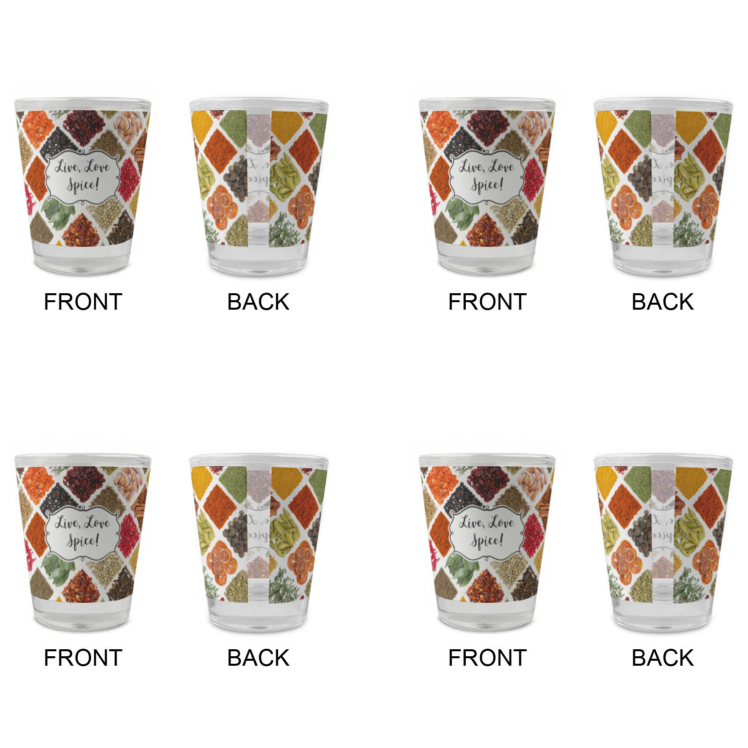 Made with frosted glass, these shot glasses are printed in full color with the design of your choice. They are a standard 1.5oz shot glass and are 2.4" tall. The print is wrapped around the shot glass in a full wrap and boldly displays your customization.