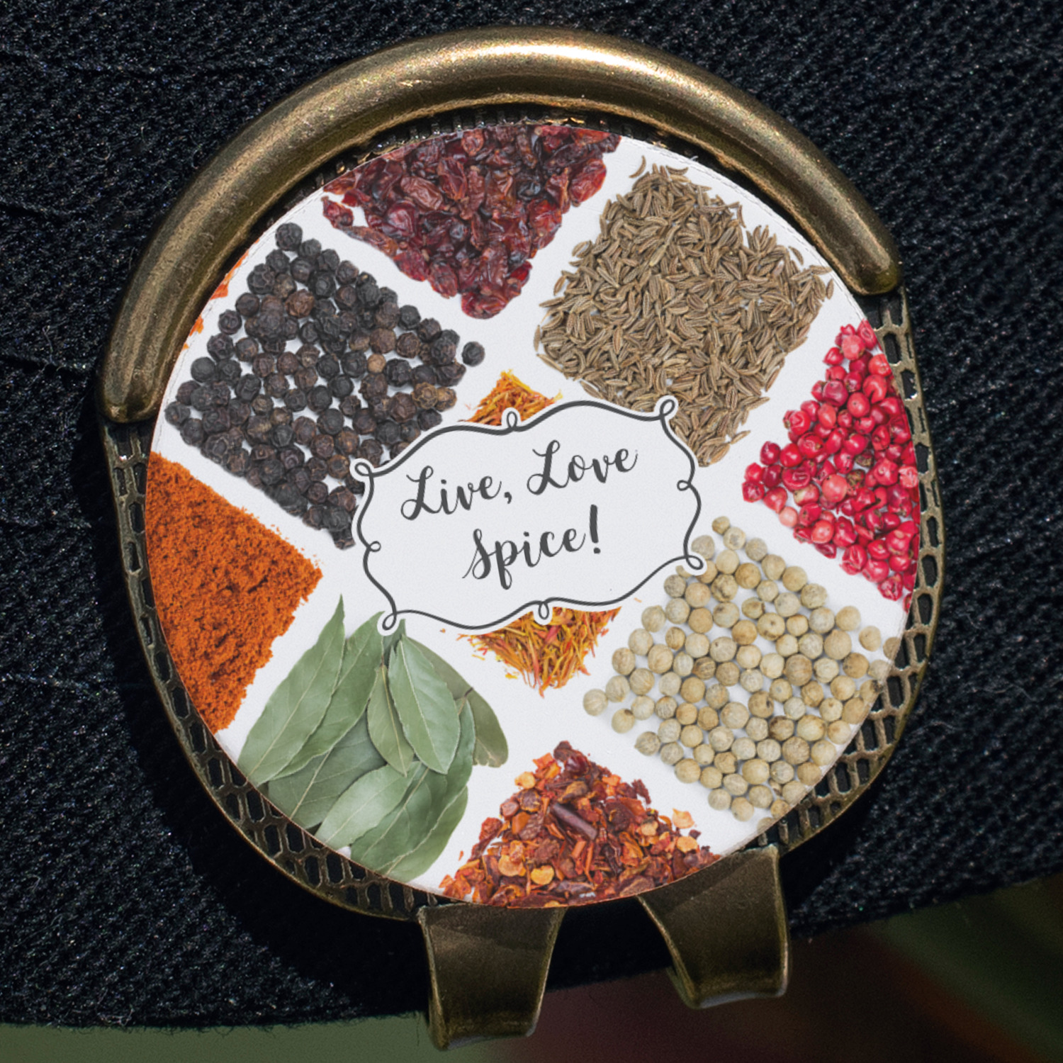 The words "Live, Love, Spice" are featured in a curly frame in the middle of this design. You can easily customize the words to your liking. We have other herb & spice patterns in our library - so feel free to browse and use the pattern that appeals to you. Let us know if there is anything that we can help you with.