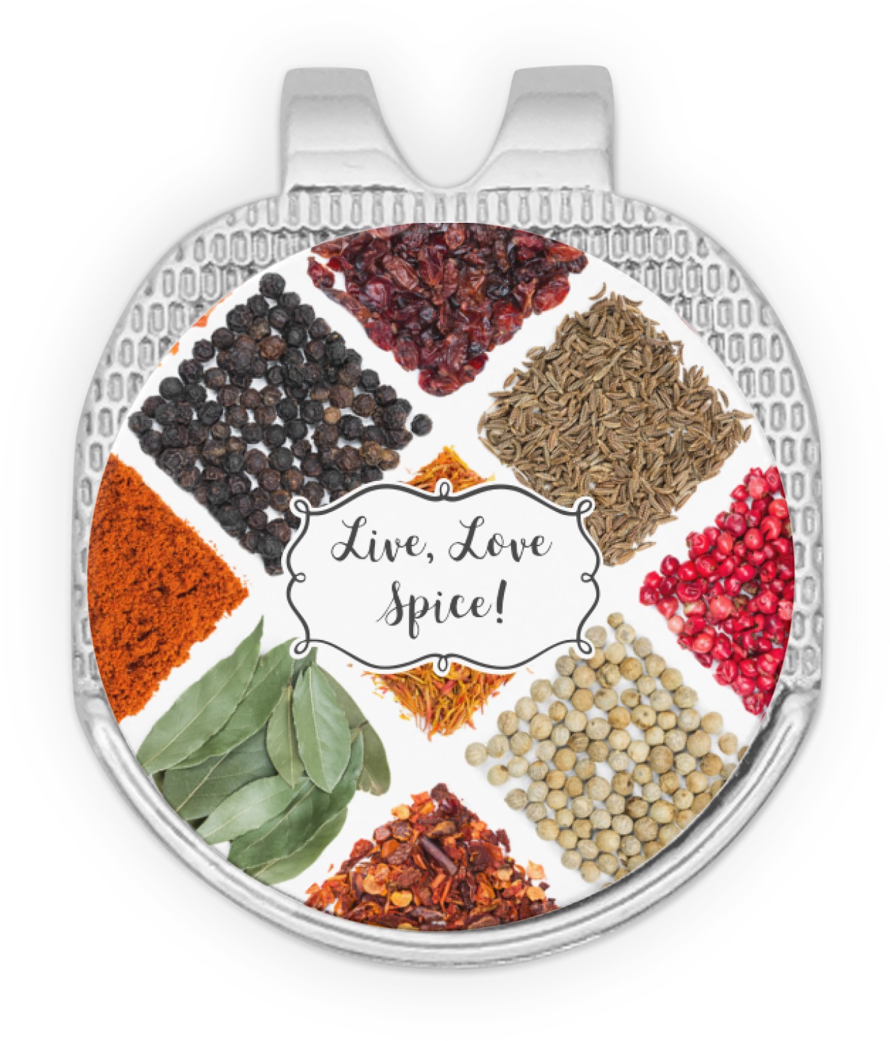 The words "Live, Love, Spice" are featured in a curly frame in the middle of this design. You can easily customize the words to your liking. We have other herb & spice patterns in our library - so feel free to browse and use the pattern that appeals to you. Let us know if there is anything that we can help you with.