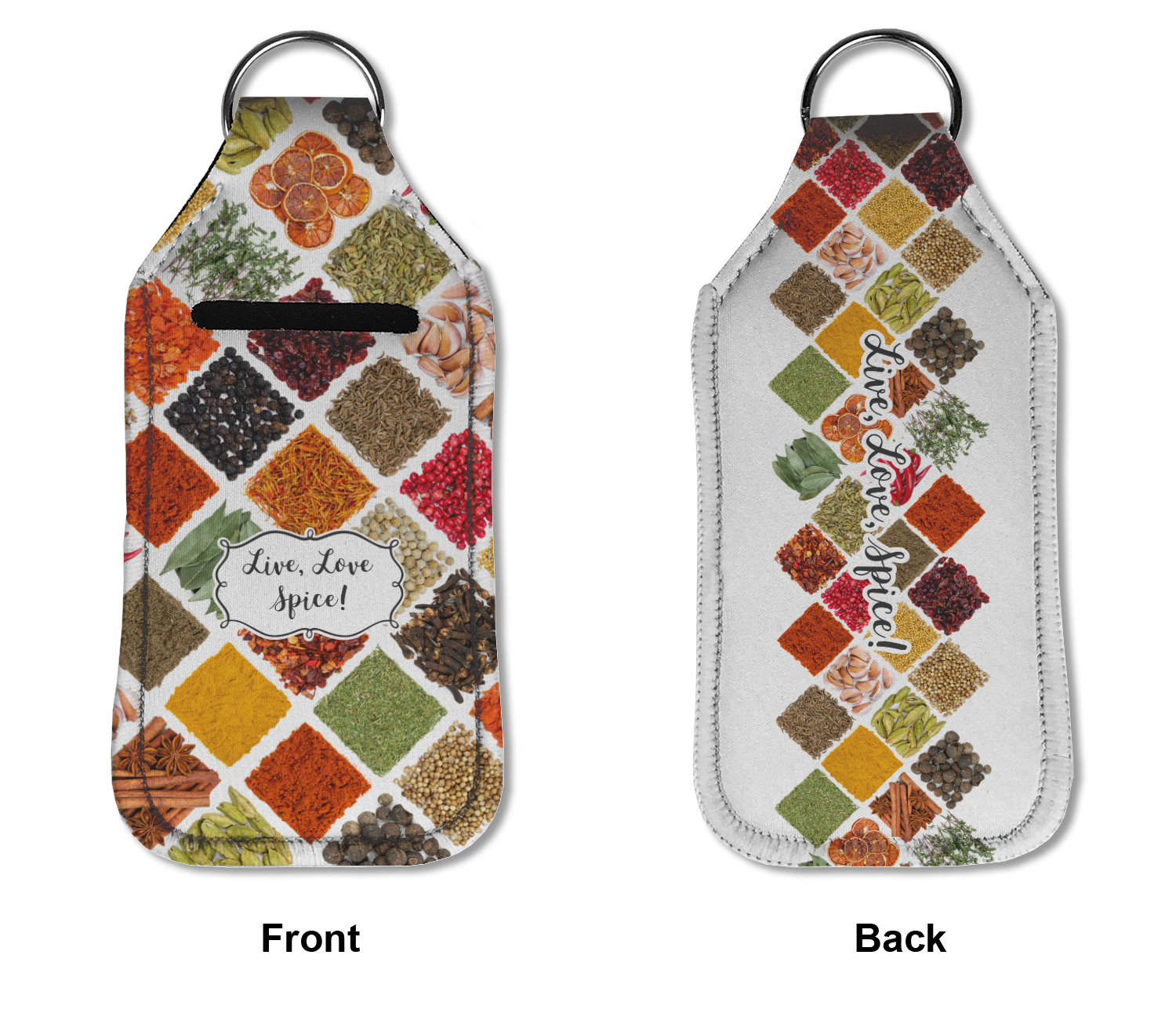 Each hand sanitizer holder comes with its own empty travel-sized, refillable hand sanitizer sure to fit snug in your customized sanitizer case! Our hand sanitizer cases are a durable, yet soft neoprene material sure to last any daily activities or travel agenda. Customize and personalize a hand sanitizer bottle holder with one of our two sizes - small (4.25" x 2.25") or large (5.5" x 2.5"). Each travel sanitizer holder comes with a keyring for attachment on bags, keys, or more!