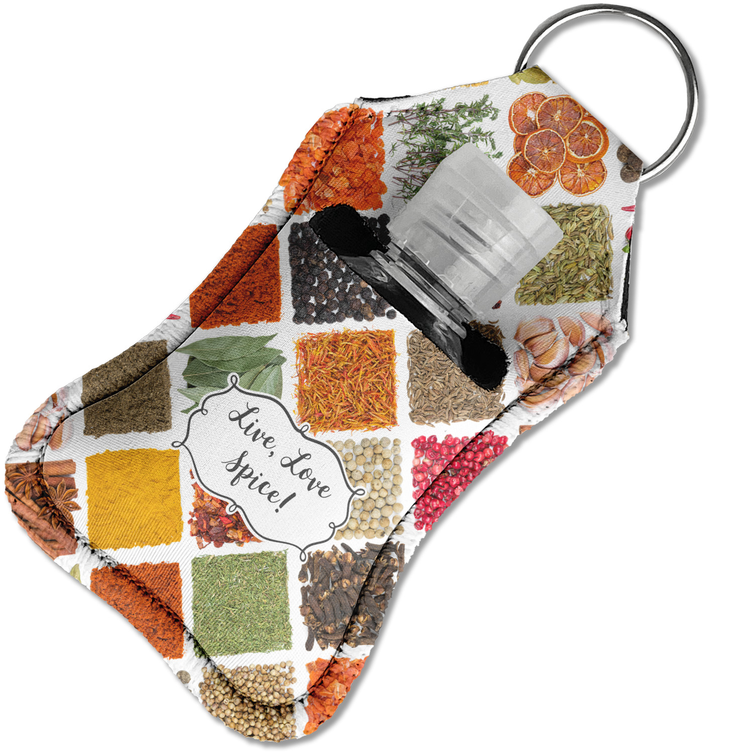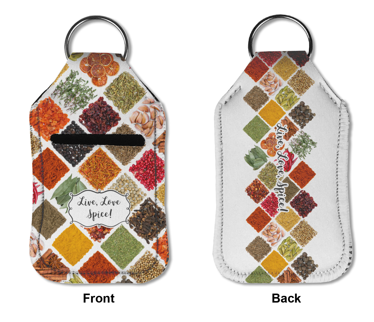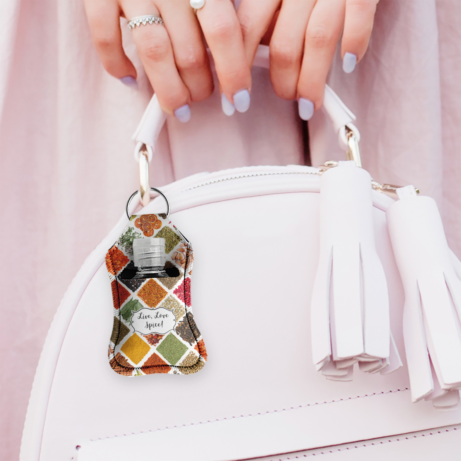 Each hand sanitizer holder comes with its own empty travel-sized, refillable hand sanitizer sure to fit snug in your customized sanitizer case! Our hand sanitizer cases are a durable, yet soft neoprene material sure to last any daily activities or travel agenda. Customize and personalize a hand sanitizer bottle holder with one of our two sizes - small (4.25" x 2.25") or large (5.5" x 2.5"). Each travel sanitizer holder comes with a keyring for attachment on bags, keys, or more!