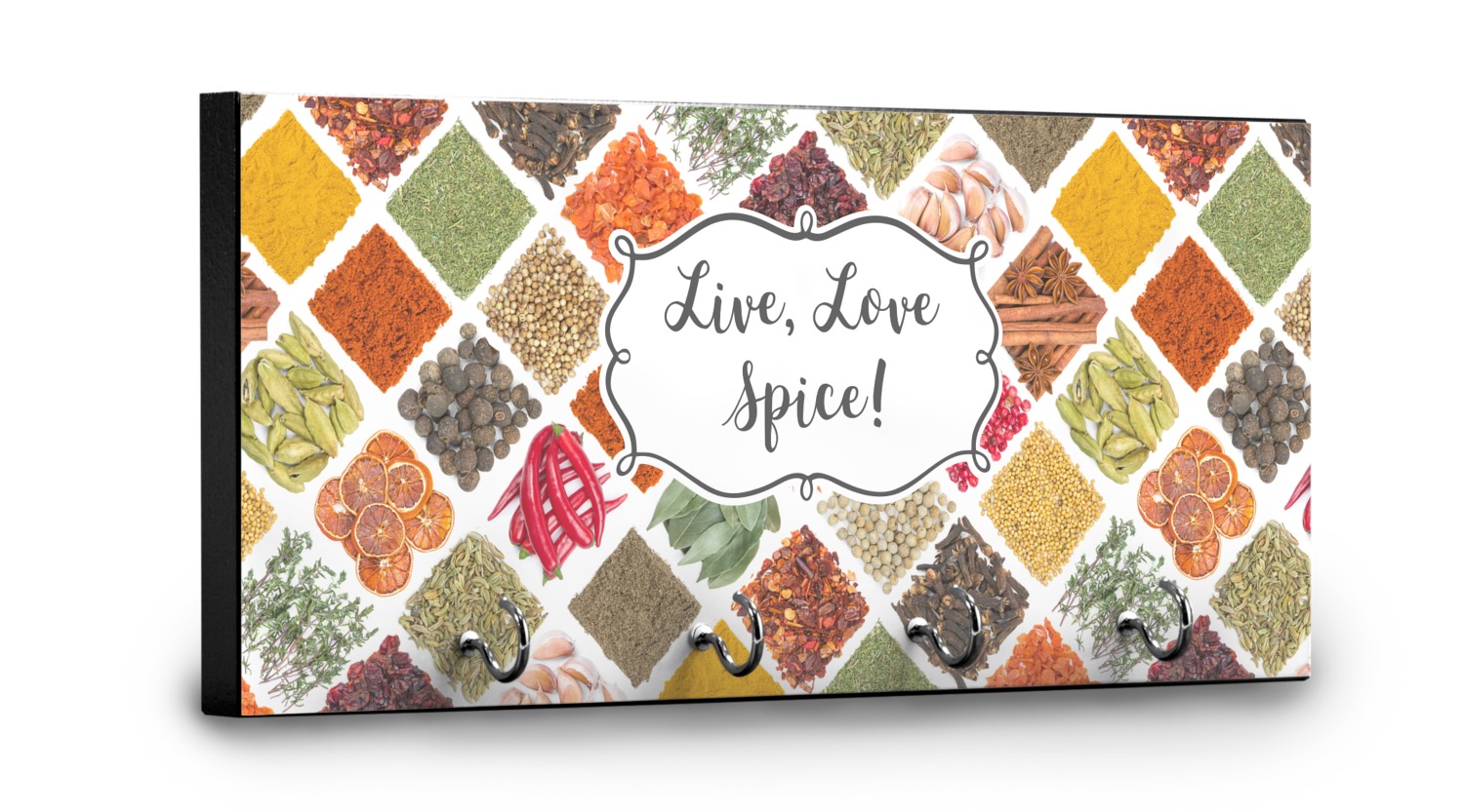 This 11" x 5" key hanger is made of sturdy wood and has four metal hooks lining the bottom. This is the perfect size for a family with several drivers. Not only can you hang keys on it though, but pet leashes and other small items. The board is black on the sides and back and is printed with the design of your choice on the front.