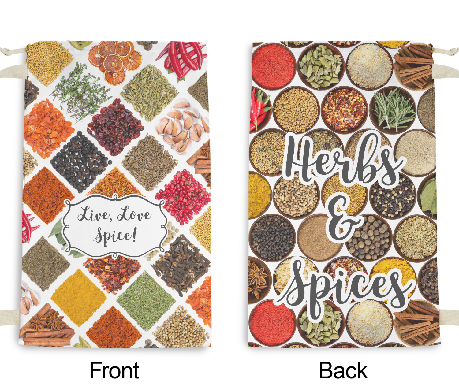 The main pattern is made of various spices such as dried thyme, white pepper, coriander, cumin, turmeric, red chili peppers and a whole lot more. The spices are all laid out in a fun diamond repeating pattern. This design simply looks stunning on any cook wear and more.
