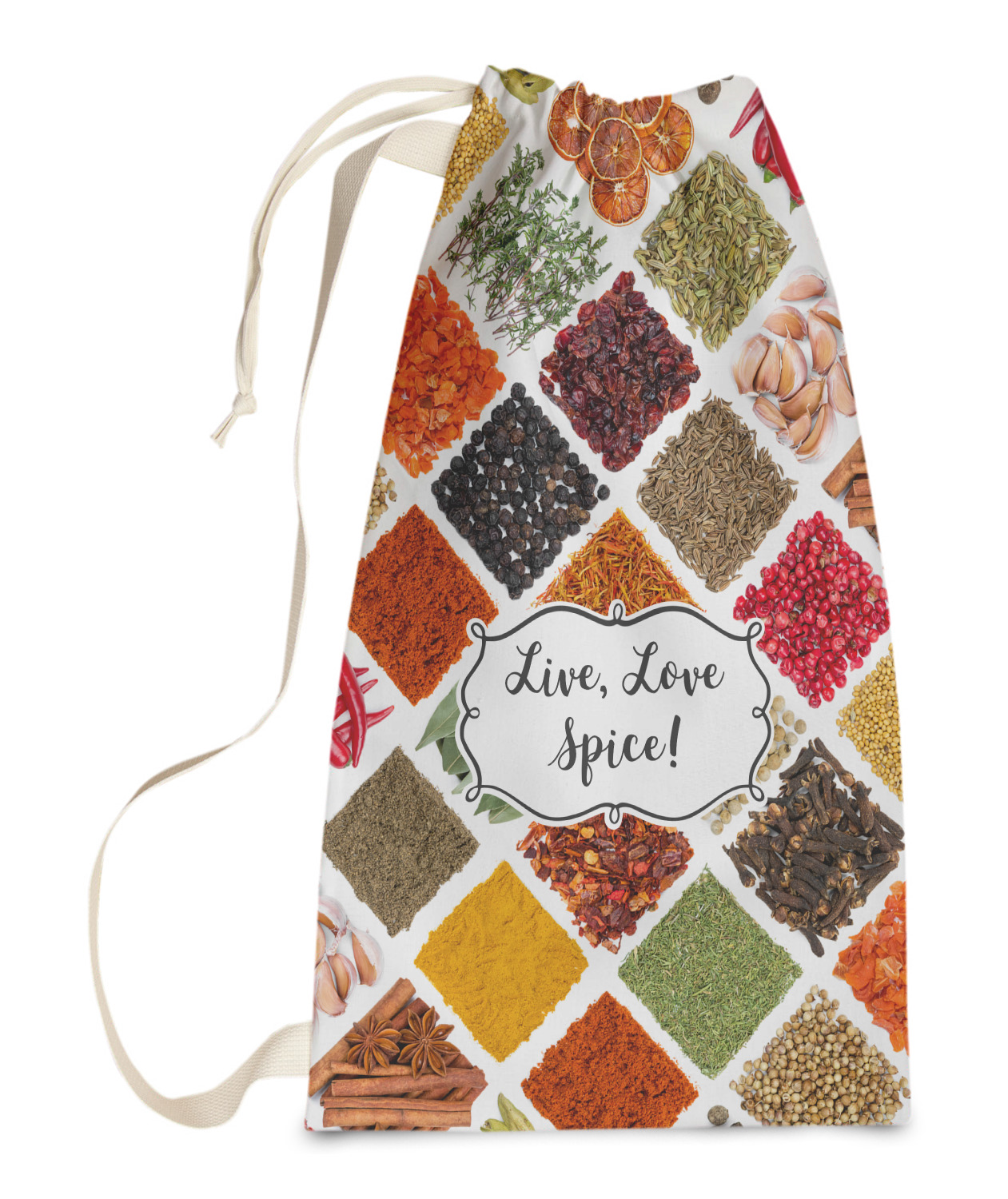 Carry your laundry in style with these customized laundry bags. Available in two sizes, featuring a natural colored woven strap and a cinch cord, these bags hold a lot of clothes or anything else you want to fit in them.