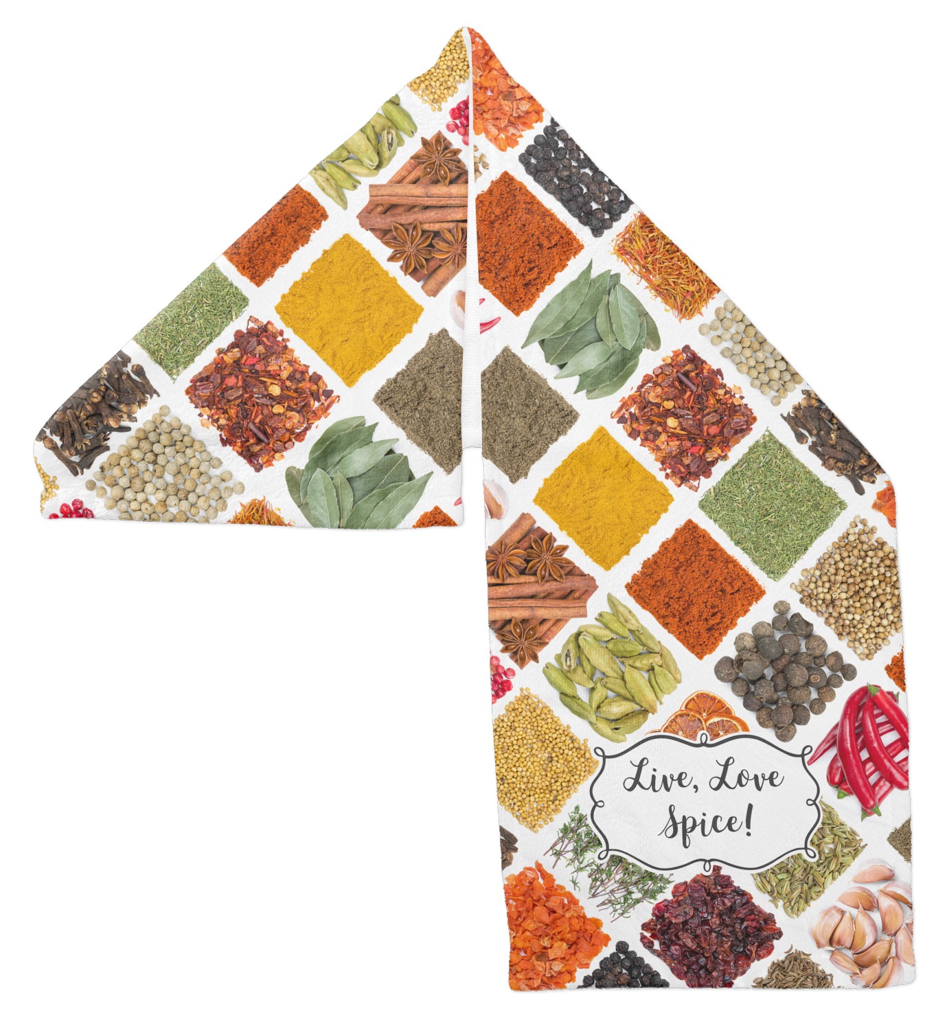 The main pattern is made of various spices such as dried thyme, white pepper, coriander, cumin, turmeric, red chili peppers and a whole lot more. The spices are all laid out in a fun diamond repeating pattern. This design simply looks stunning on any cook wear and more.