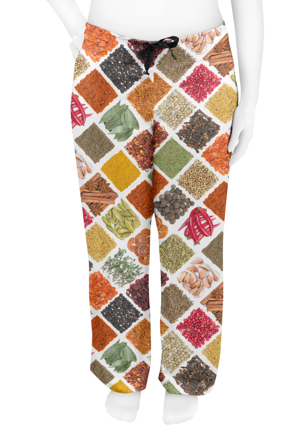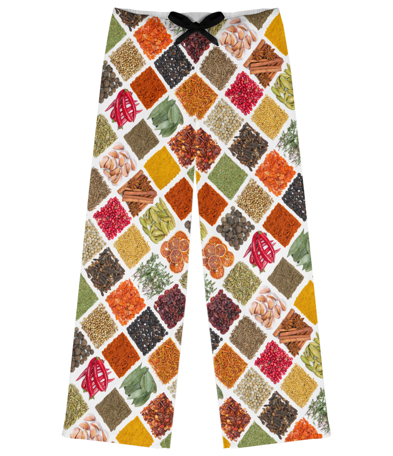 The main pattern is made of various spices such as dried thyme, white pepper, coriander, cumin, turmeric, red chili peppers and a whole lot more. The spices are all laid out in a fun diamond repeating pattern. This design simply looks stunning on any cook wear and more.