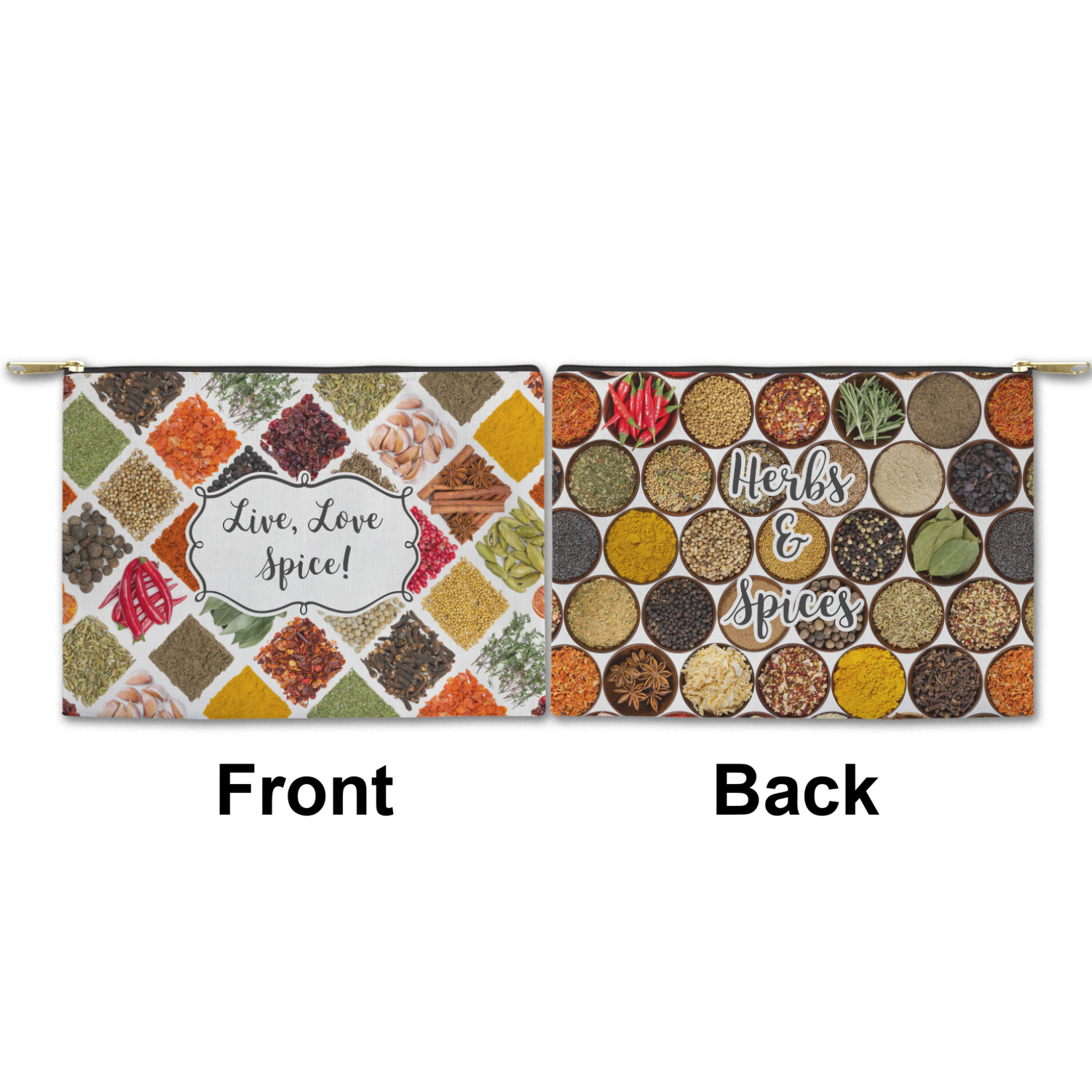 You can design both the front and the back of the pouch - same design, two complementary designs or two totally different designs - the choice is yours! We offer many different personalization styles i.e. name, name & initial, monograms - so the choice to personalize is also yours.