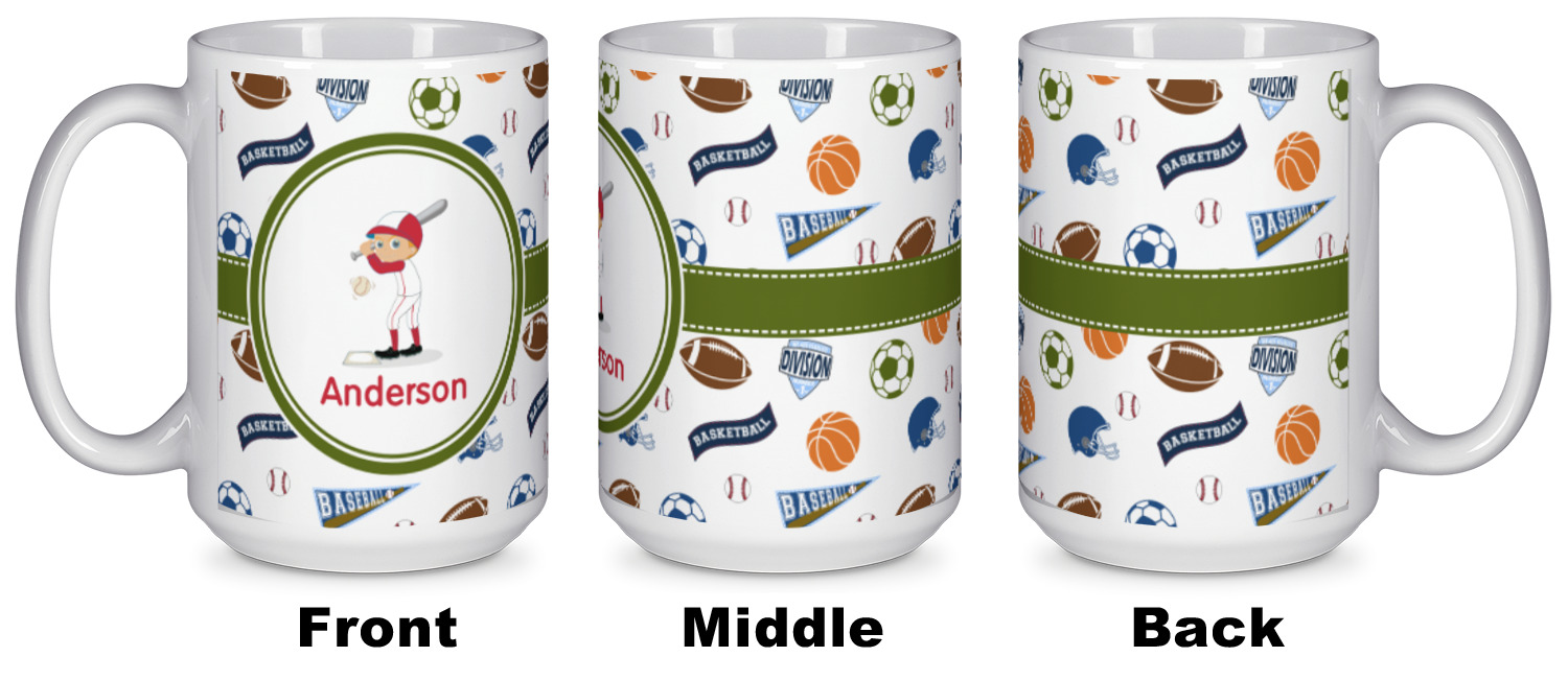 Baseball League Designs for 15 oz Coffee Mugs - White