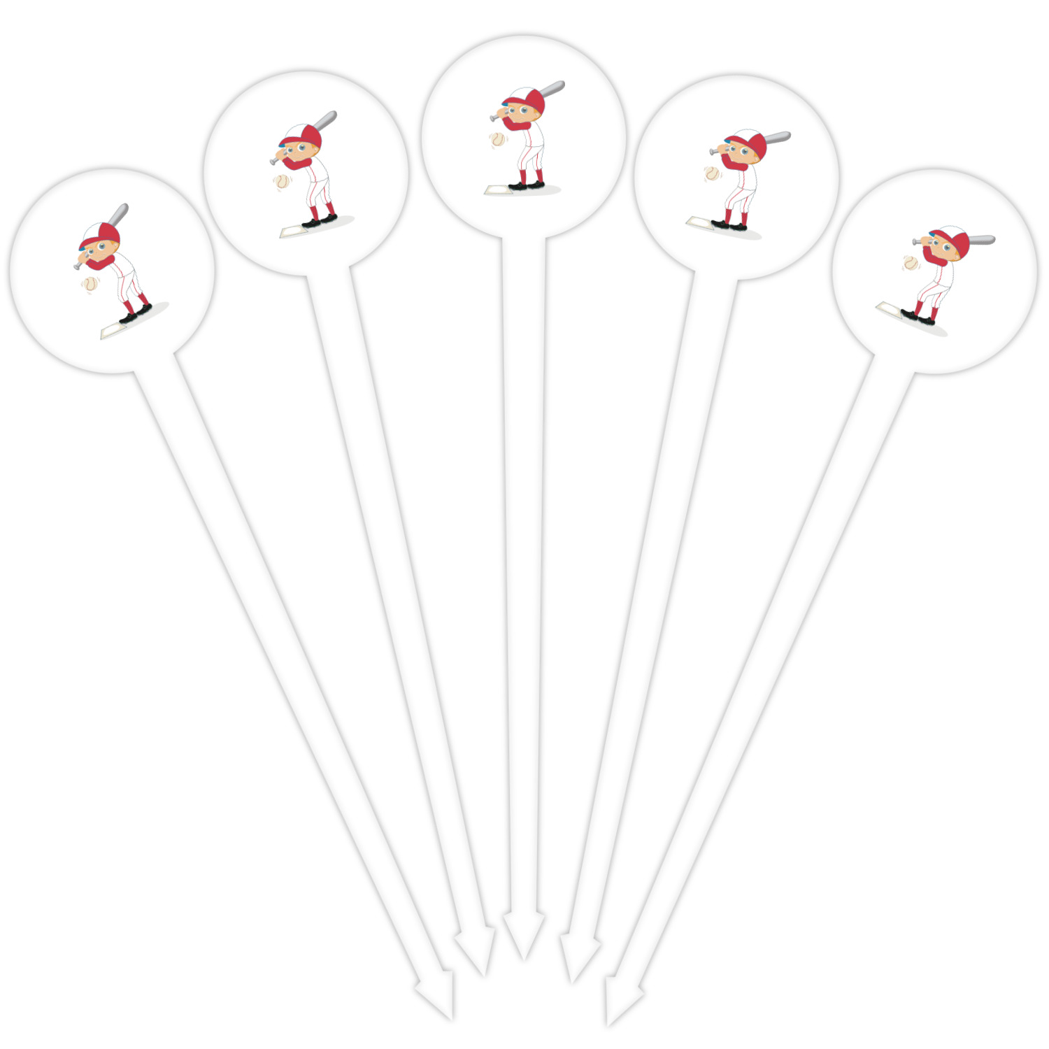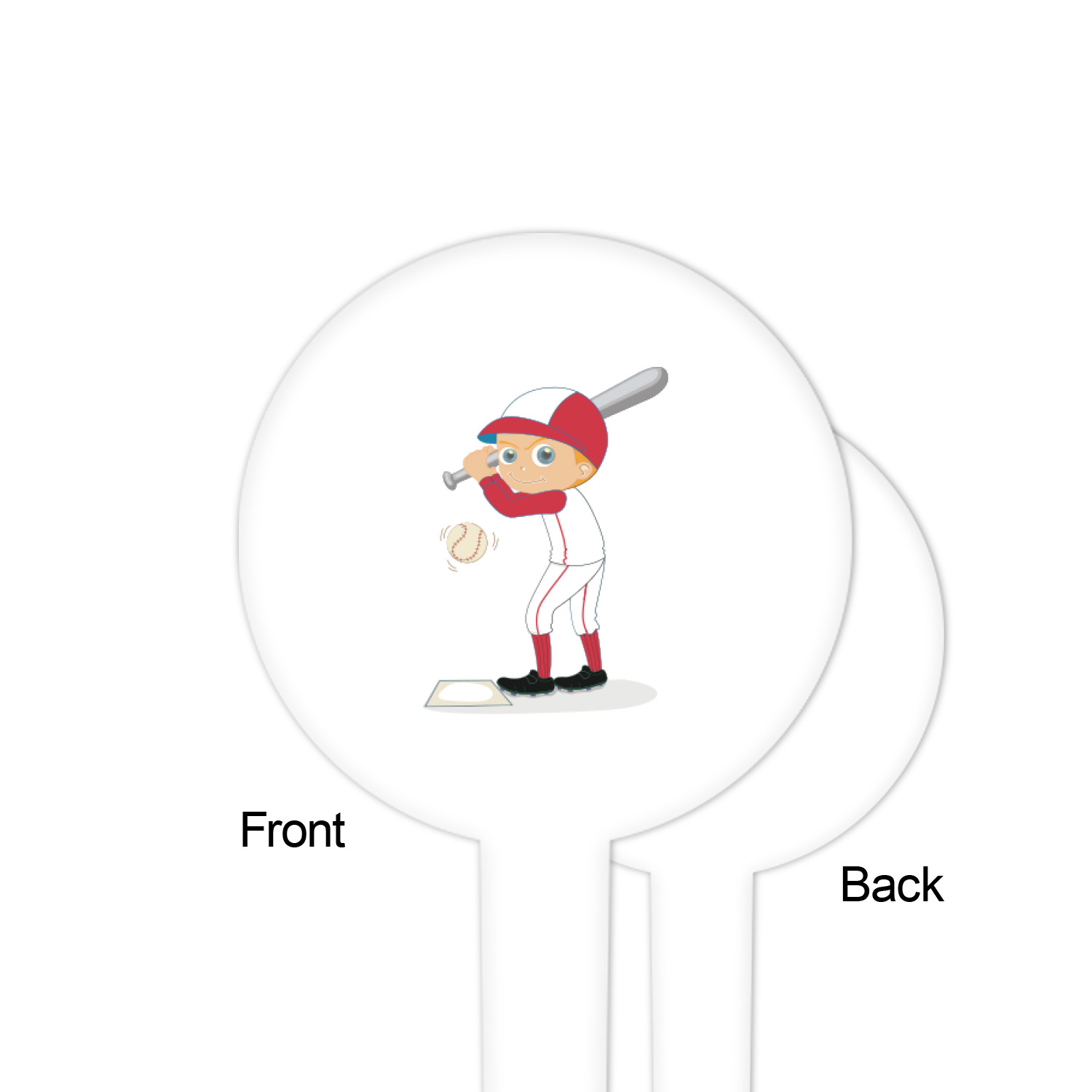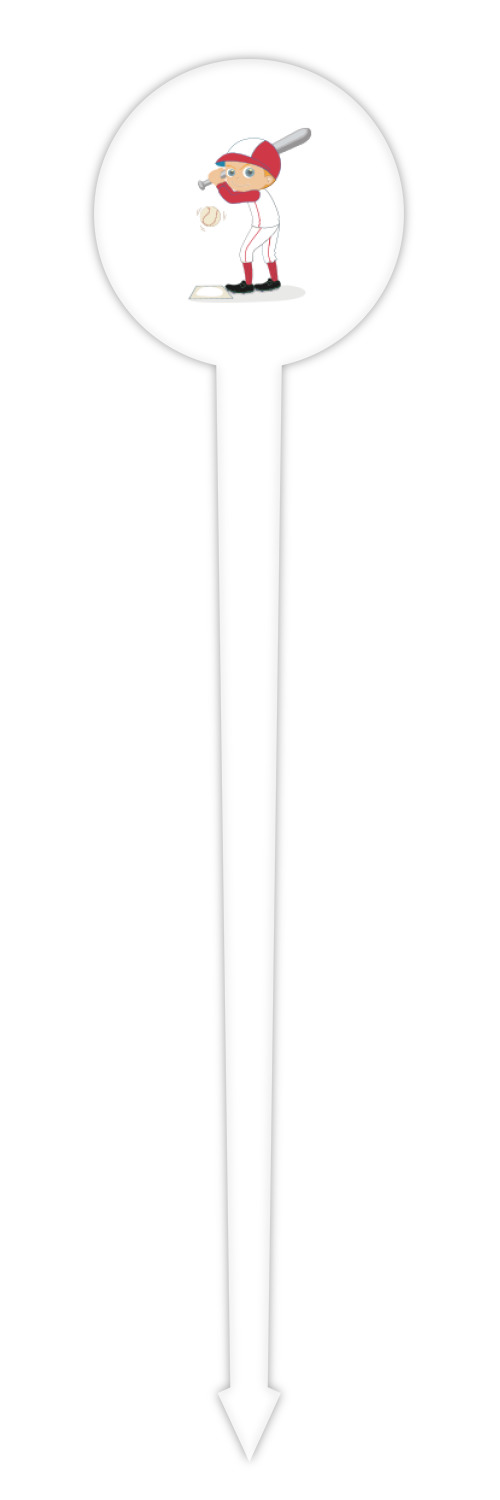 Baseball Player Designs for 4" Round Plastic Food Picks - White - Single-Sided