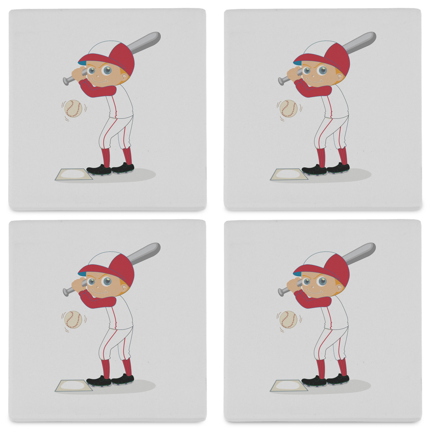 Baseball Player Designs for Absorbent Stone Coasters - Set of 4
