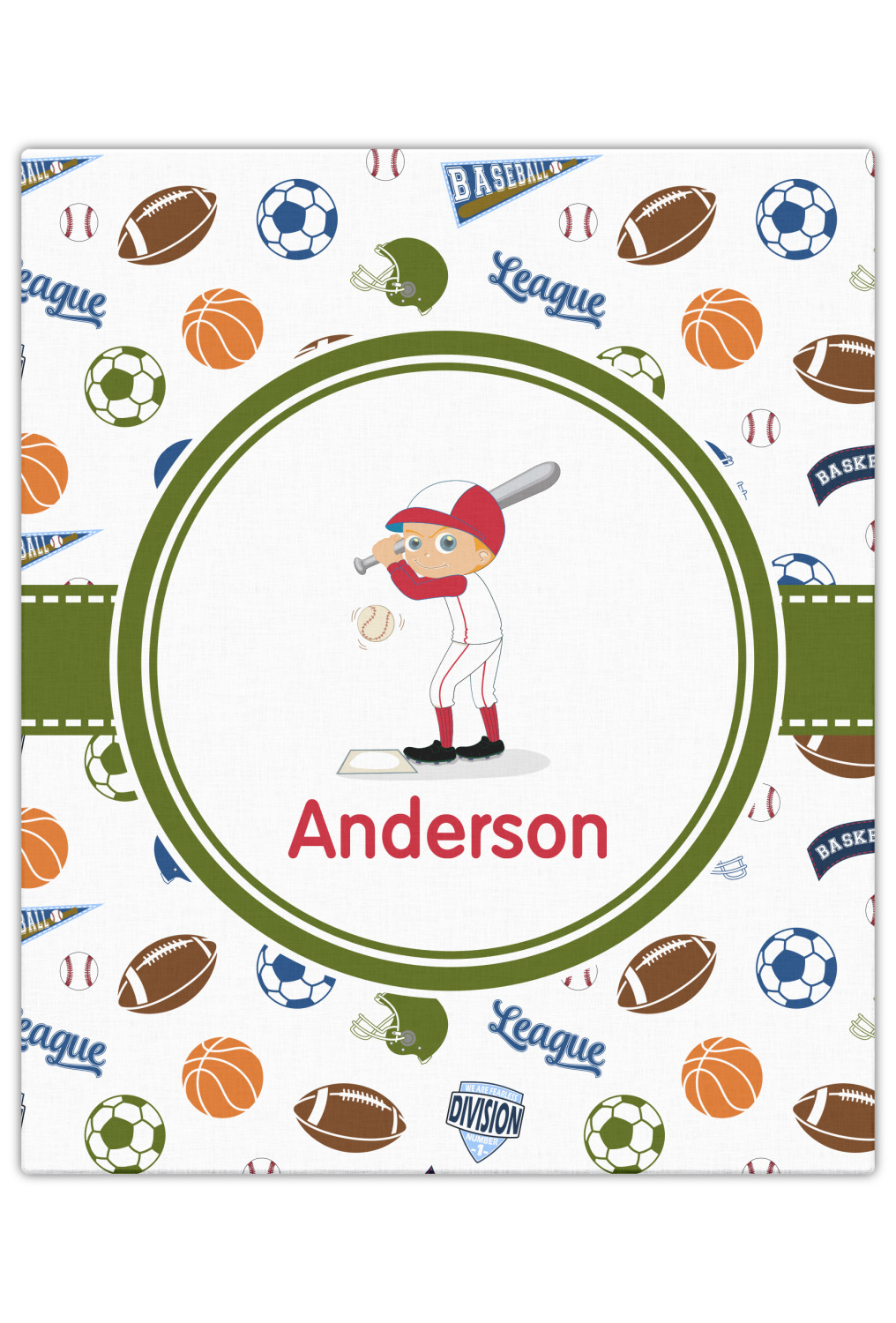 Our sports design is perfect for the kid involved in many different sports. The background of this design have a football, a soccer ball, a basket ball and a baseball along with other graphics for these sports. The background color is your choice - we chose white.