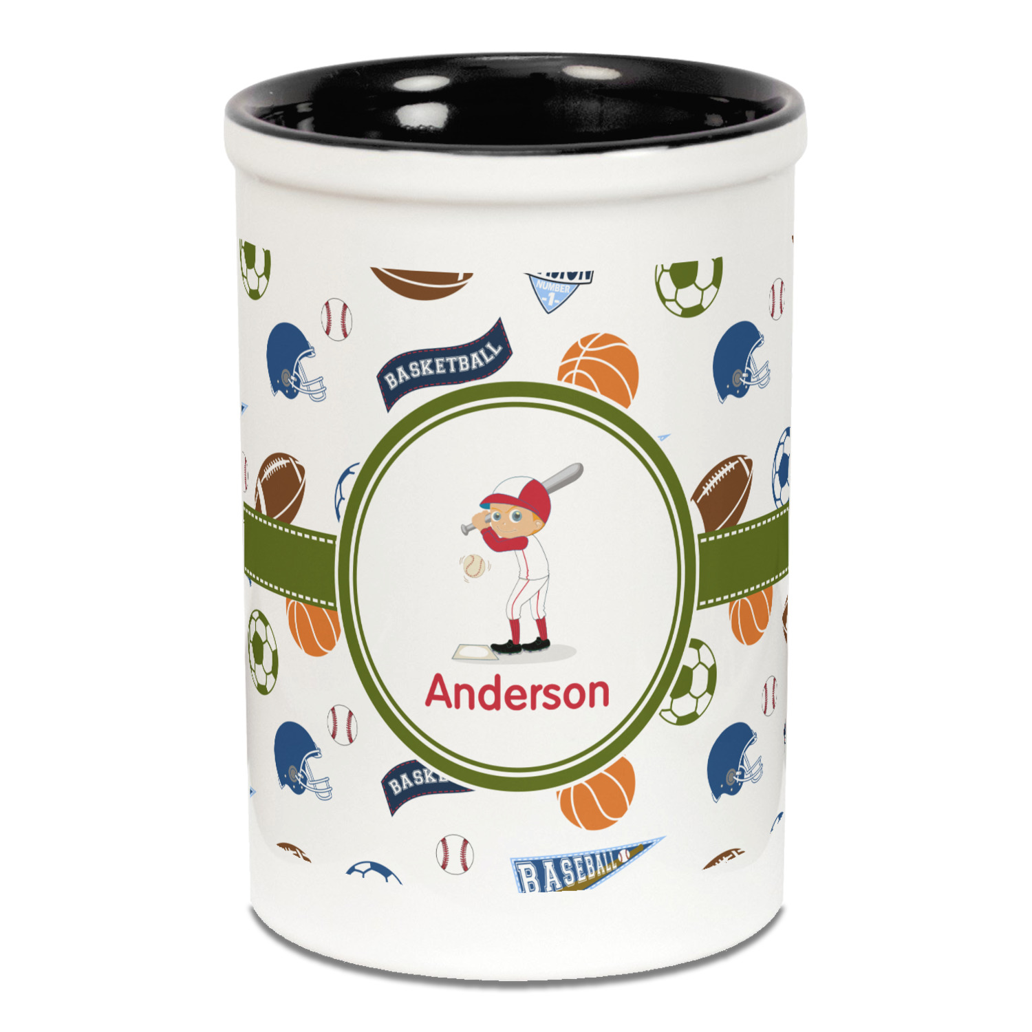 Baseball Player Designs for Ceramic Pencil Holders - Black