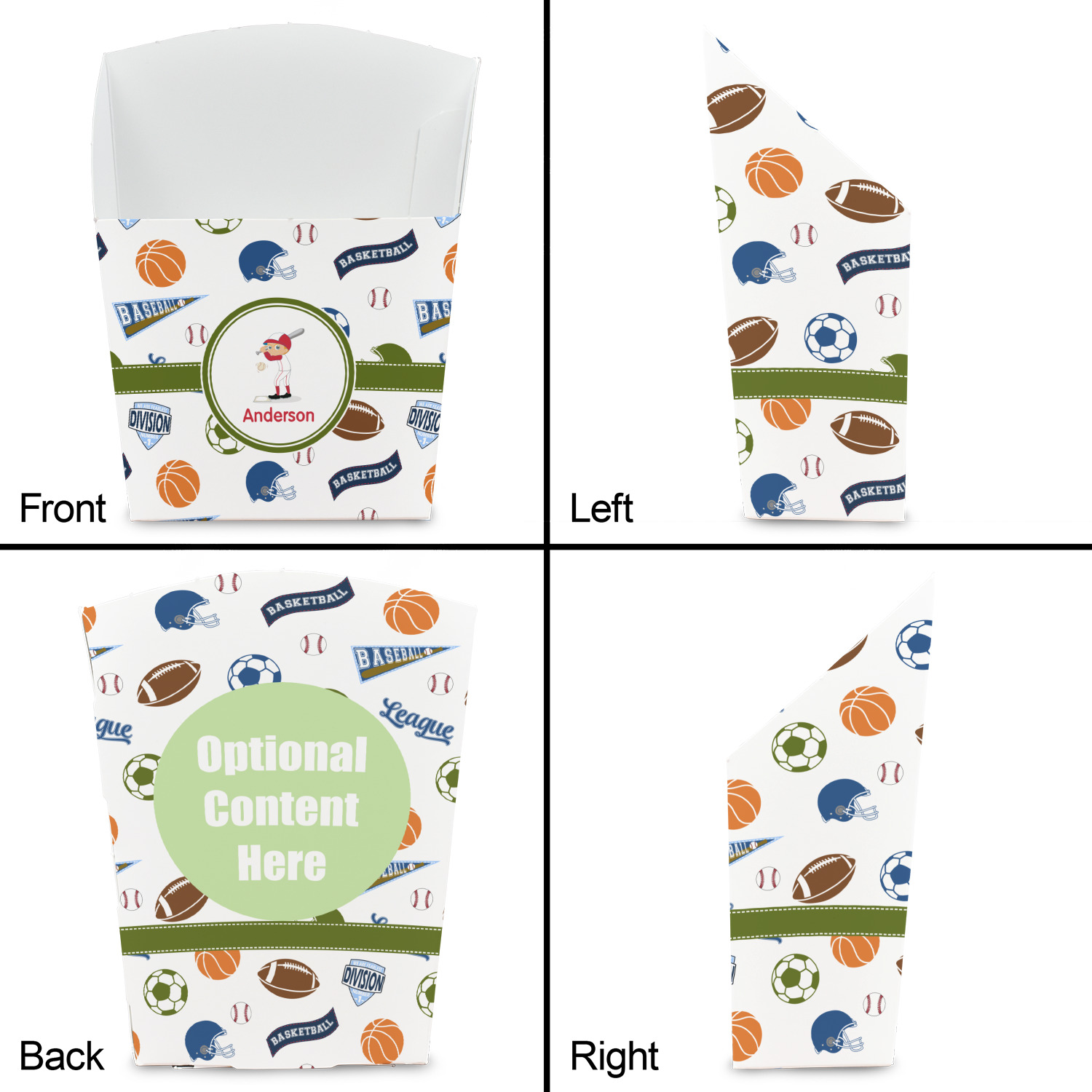 These favor boxes are printed in full color on quality cardstock - so coordinating the french fry favor boxes to match your event's themes or colors should be a breeze. You can upload your own design including artwork, logos or photos