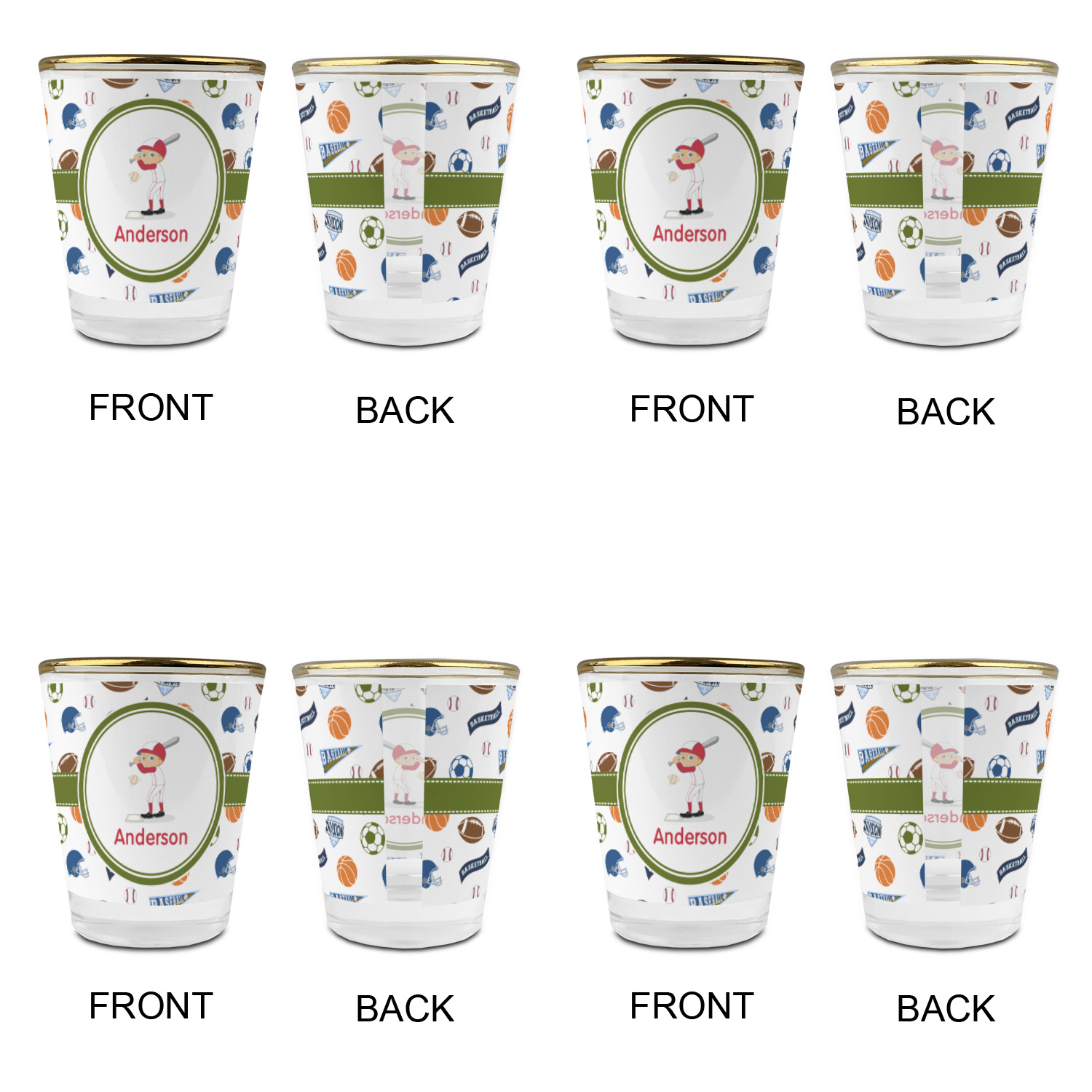 Baseball Player Designs for Glass Shot Glasses - 1.5 oz - with Gold Rim - Set of 4
