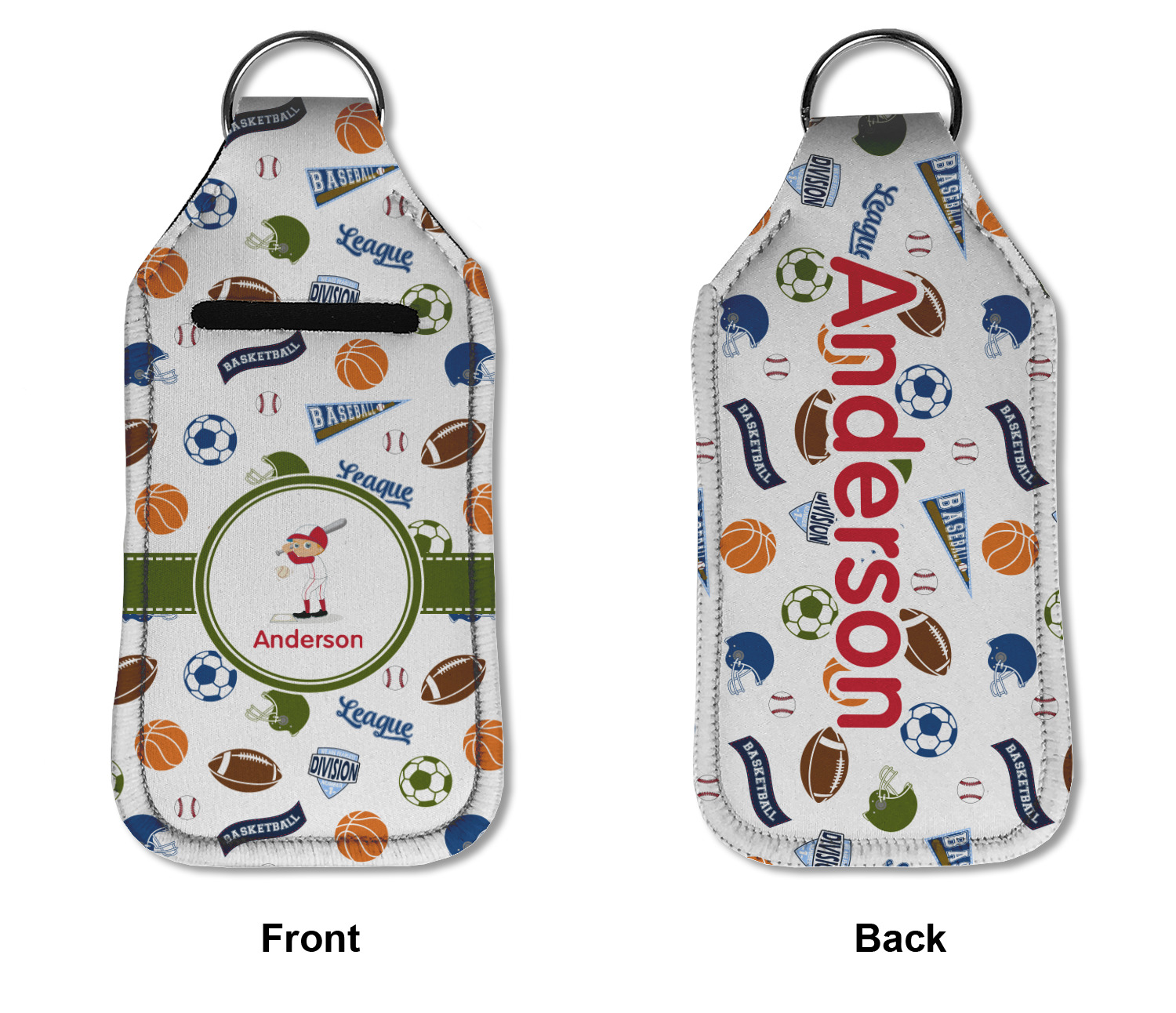 Each hand sanitizer holder comes with its own empty travel-sized, refillable hand sanitizer sure to fit snug in your customized sanitizer case! Our hand sanitizer cases are a durable, yet soft neoprene material sure to last any daily activities or travel agenda. Customize and personalize a hand sanitizer bottle holder with one of our two sizes - small (4.25" x 2.25") or large (5.5" x 2.5"). Each travel sanitizer holder comes with a keyring for attachment on bags, keys, or more!