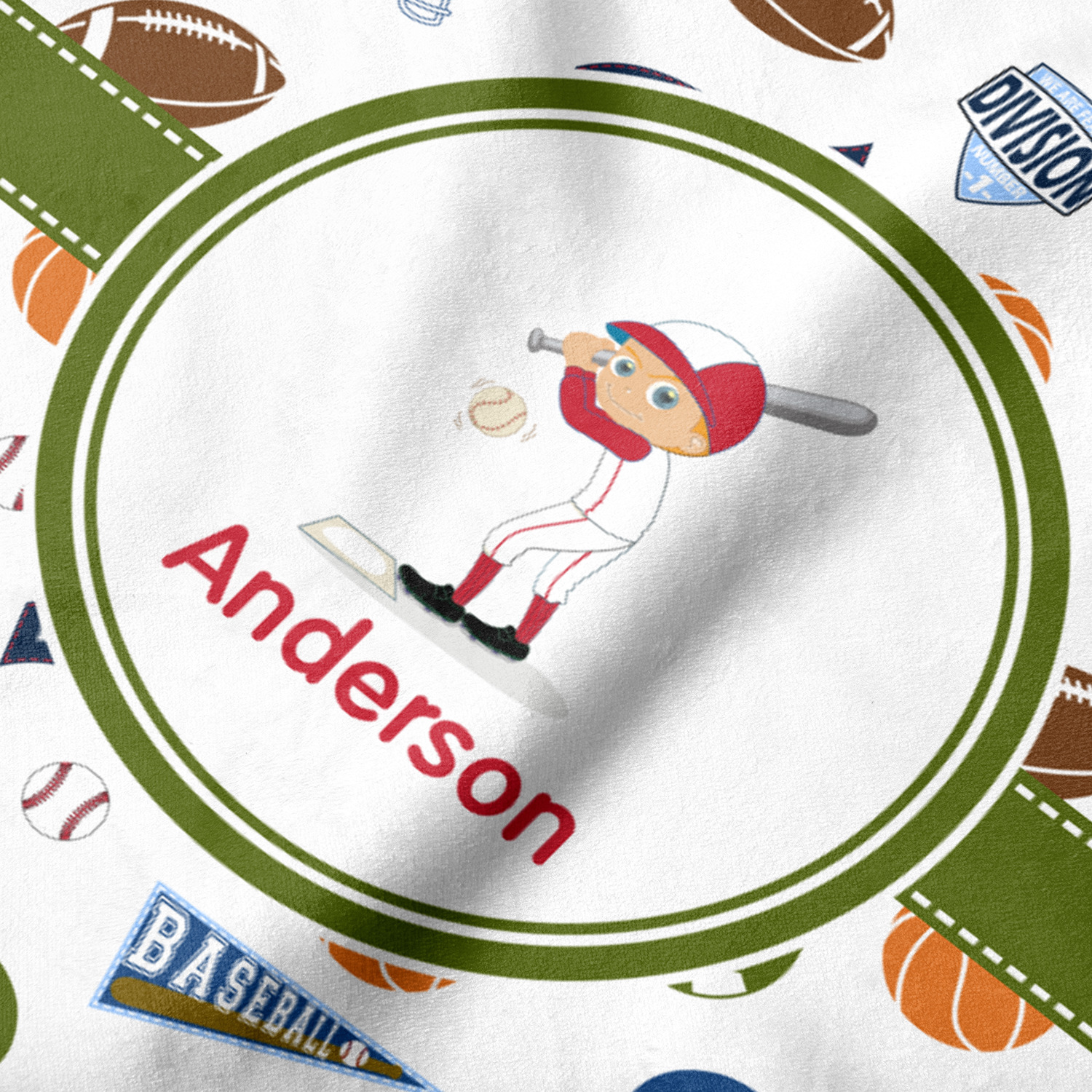 Our sports design is perfect for the kid involved in many different sports. The background of this design have a football, a soccer ball, a basket ball and a baseball along with other graphics for these sports. The background color is your choice - we chose white.