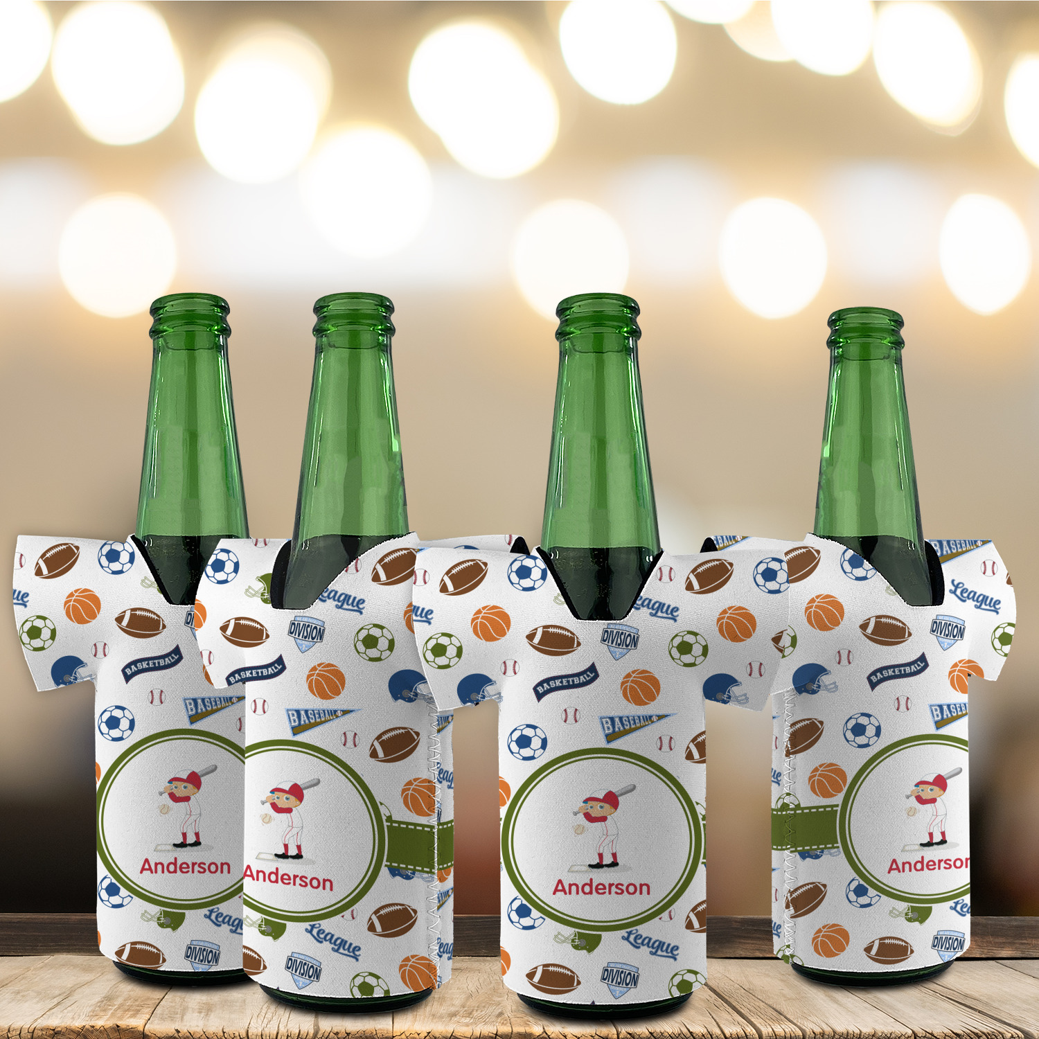 Fabricated from a thick, insulating neoprene, these custom can sleeve keep your drink cold, while proudly displaying your customization on all sides. These can sleeves are designed to fit most 12oz bottles. Available in two types - zipper cooler for insulating the full bottle or the jersey style for sports season. Also available as a single can sleeve or in a set of 4 for you to share with friends and family. For convenient storage, they can also be folded.