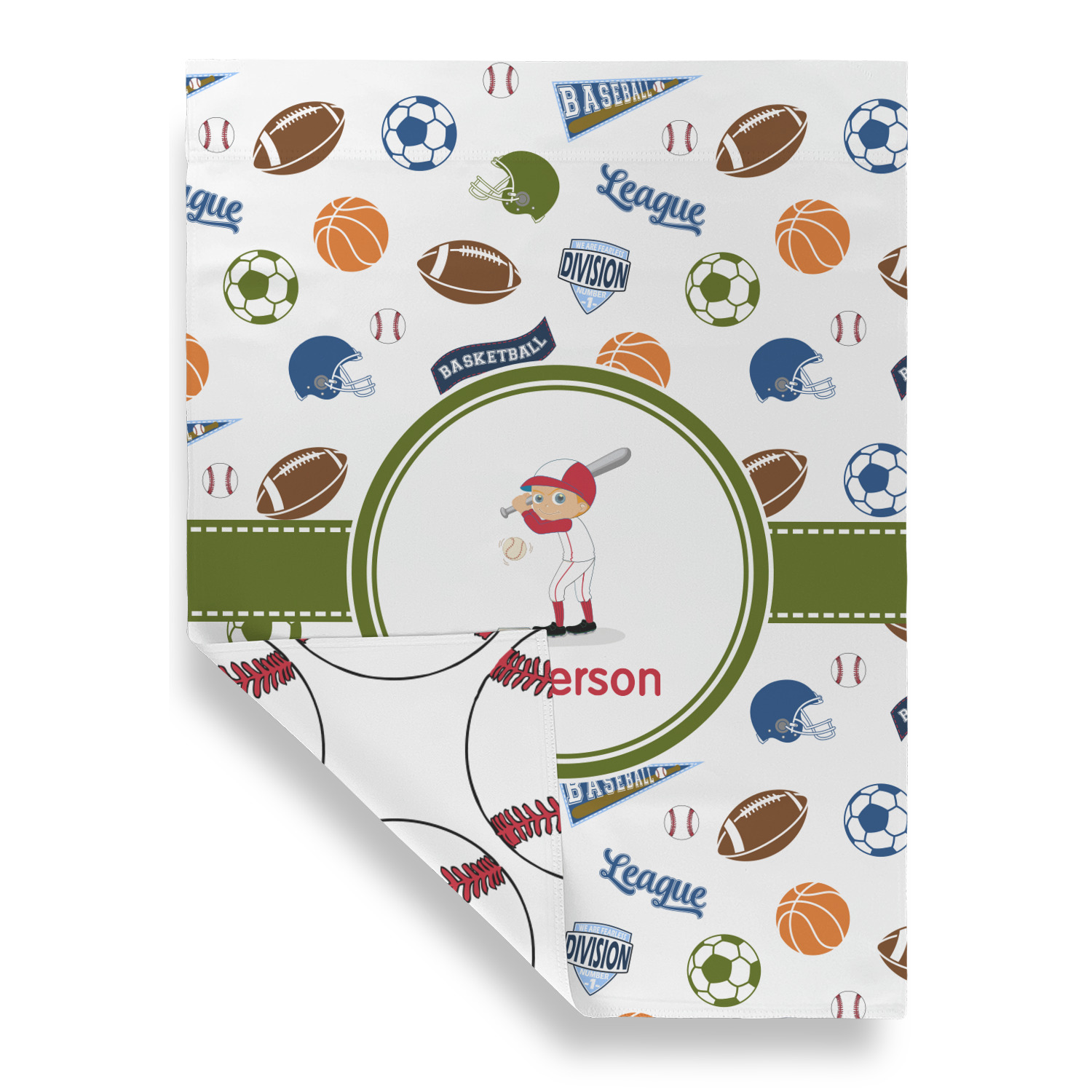 Our sports design is perfect for the kid involved in many different sports. The background of this design have a football, a soccer ball, a basket ball and a baseball along with other graphics for these sports. The background color is your choice - we chose white.
