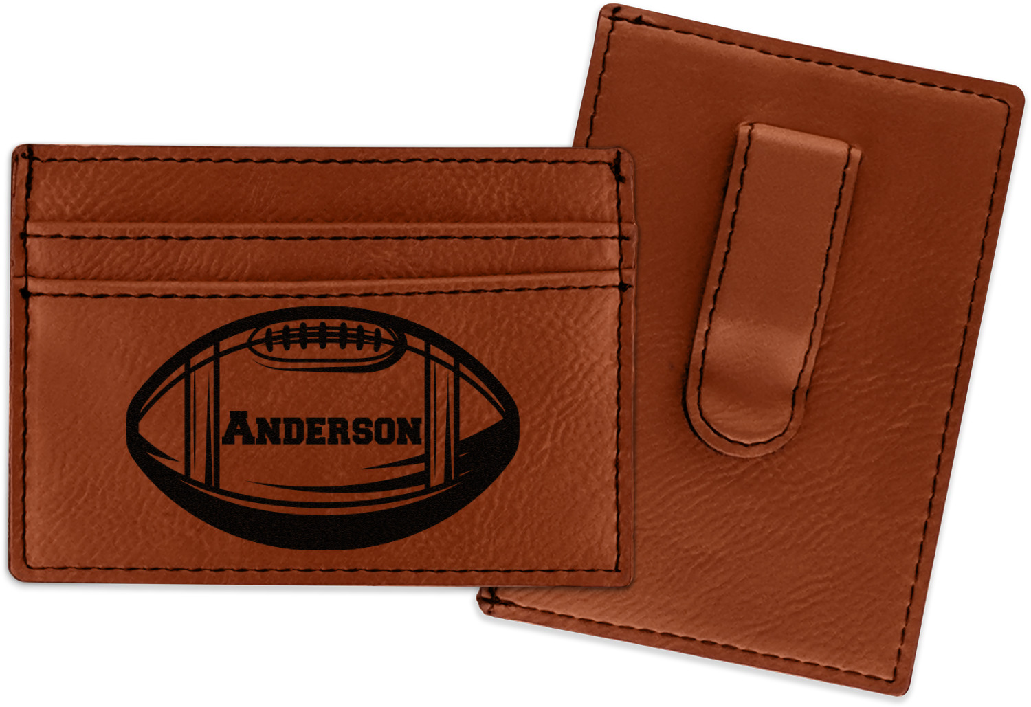 Made from a smooth brown leatherette material, these money clip wallets are the perfect accessory. They measure at approximately 4" x 2.75". On one side there is a money clip where you can slip in your cash. On the other side are three card slots for an ID and credit card or two. The money clip wallet will be laser engraved with your design on the side with the credit card slots. The graphic will come out as a black color.