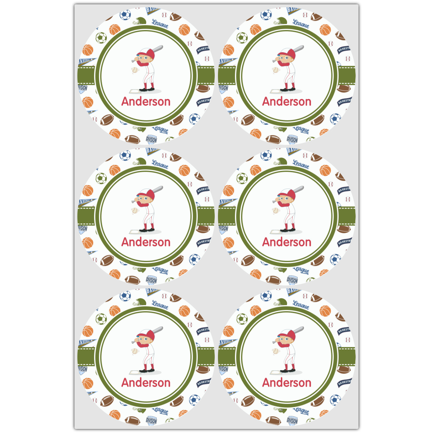 As with all of our designs, you have the choice to customize the design and see the changes live in our customization system. You have the option of choosing the background, ribbon, the label, the graphic, the personalization and of course the color. If you child only plays one sport - we have other backgrounds or you can create your own background with one of the many graphical elements in our design system. We have a choice of players i.e. baseball, basketball, soccer and football - and you can customize their uniforms to your team colors.