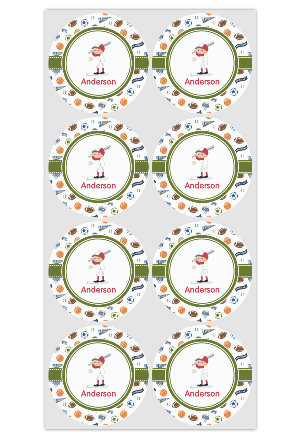 As with all of our designs, you have the choice to customize the design and see the changes live in our customization system. You have the option of choosing the background, ribbon, the label, the graphic, the personalization and of course the color. If you child only plays one sport - we have other backgrounds or you can create your own background with one of the many graphical elements in our design system. We have a choice of players i.e. baseball, basketball, soccer and football - and you can customize their uniforms to your team colors.