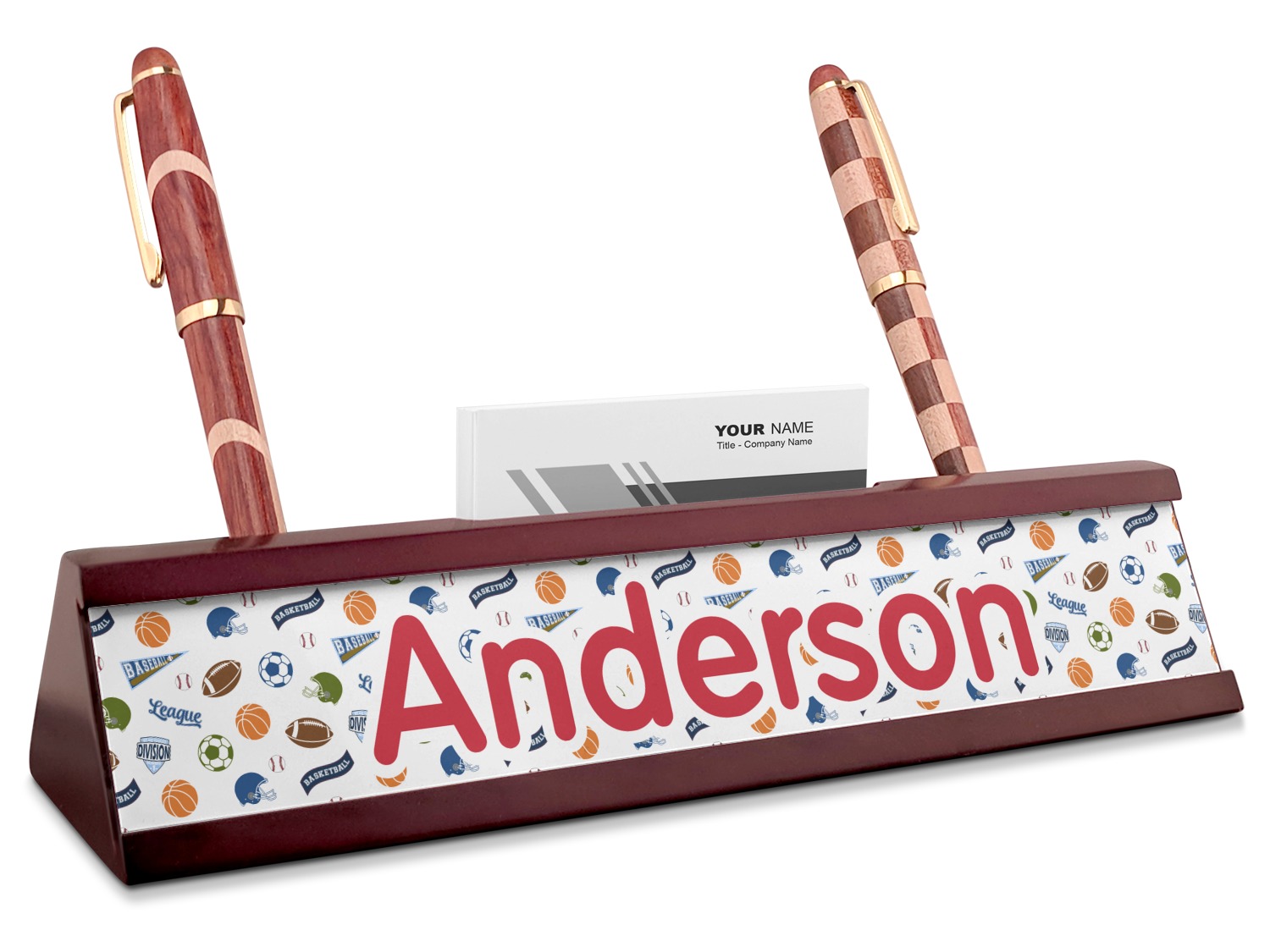 Baseball League Designs for Red Mahogany Nameplates with Business Card Holder