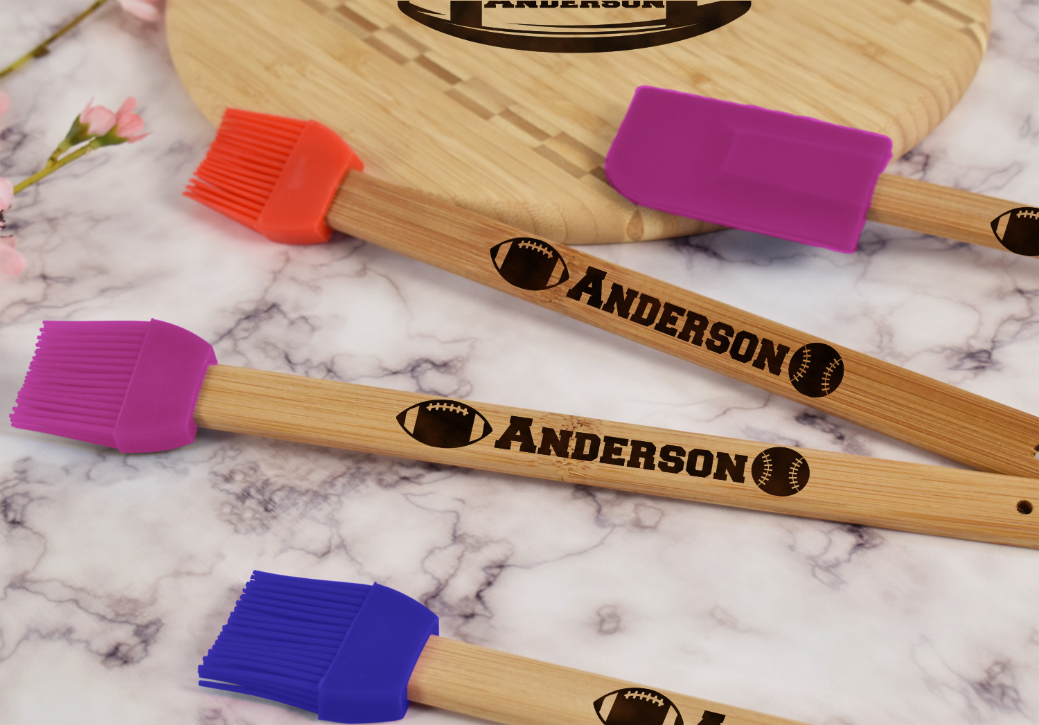 Available in 3 colors to match your kitchen décor - blue, purple and red - you are sure to find an option to perfectly fit into your kitchen tool selection. Choose your color then choose what you would like engraved onto the handle of your basting brush and we will laser engrave it for you to ensure it won't leave your kitchen space!