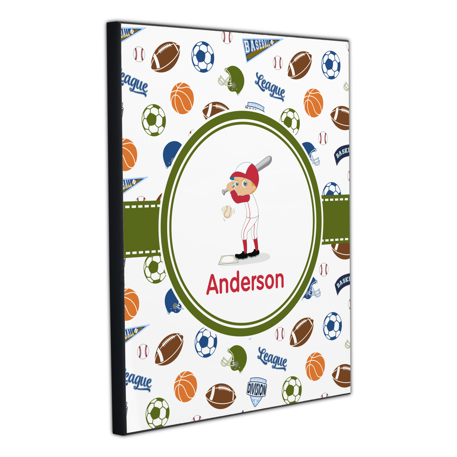 As with all of our designs, you have the choice to customize the design and see the changes live in our customization system. You have the option of choosing the background, ribbon, the label, the graphic, the personalization and of course the color. If you child only plays one sport - we have other backgrounds or you can create your own background with one of the many graphical elements in our design system. We have a choice of players i.e. baseball, basketball, soccer and football - and you can customize their uniforms to your team colors.