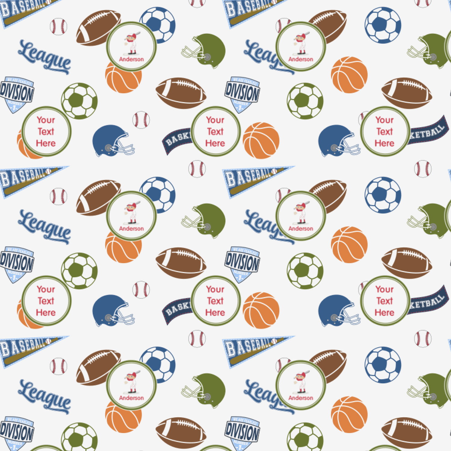 Our sports design is perfect for the kid involved in many different sports. The background of this design have a football, a soccer ball, a basket ball and a baseball along with other graphics for these sports. The background color is your choice - we chose white.