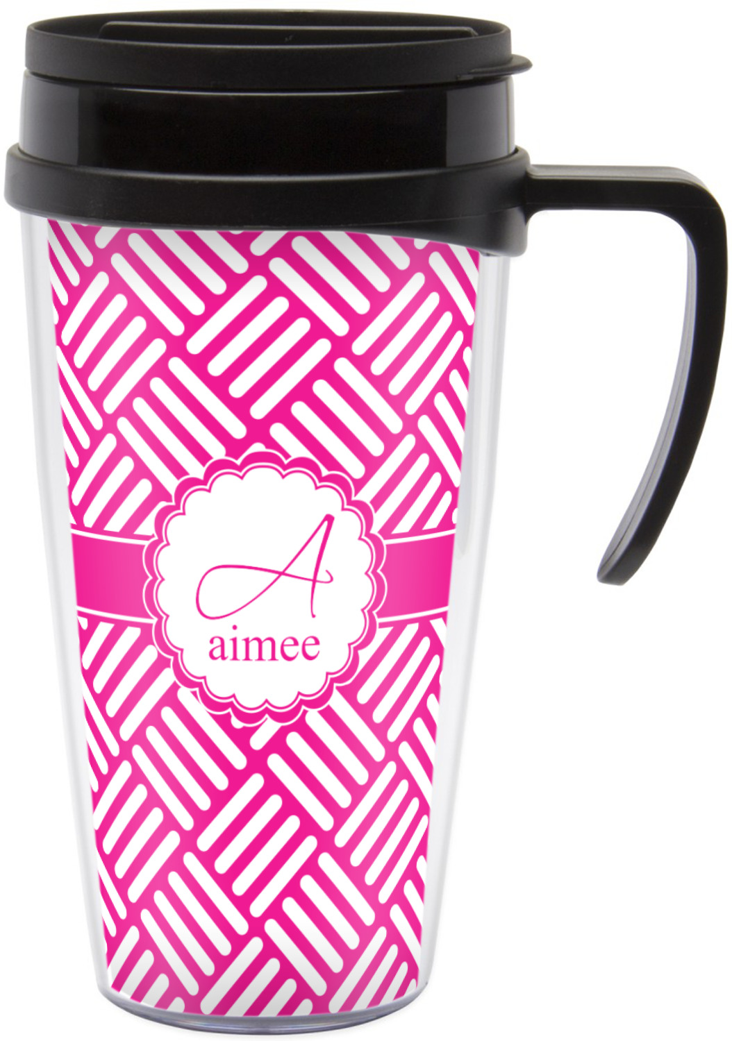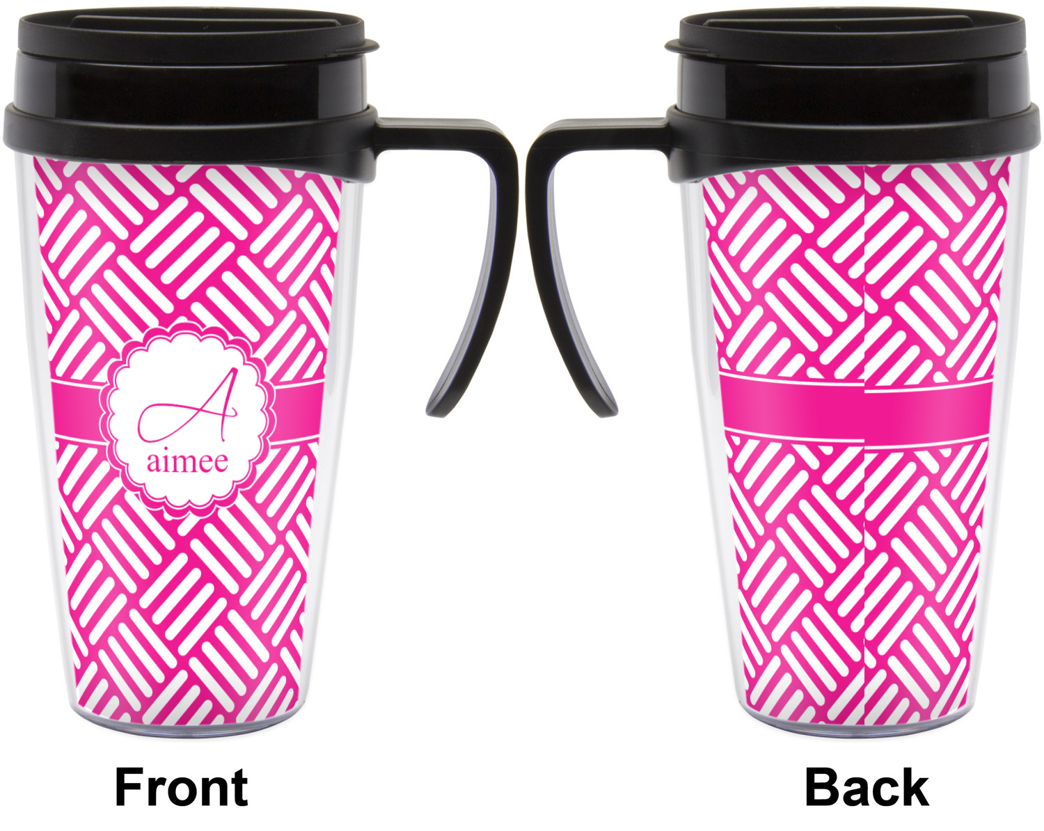 These thermal mugs are free of BPA, and insulated, to keep your drinks hot or cold. The black, snap on lid and the slider for sipping allows you to conveniently sip your drink without constantly worrying about a disastrous spill. We offer this mug with and without a handle, to better suit your needs. Each custom thermal mug holds up to 16 ounces of liquid and displays your customization on all sides on premium gloss media inserts.