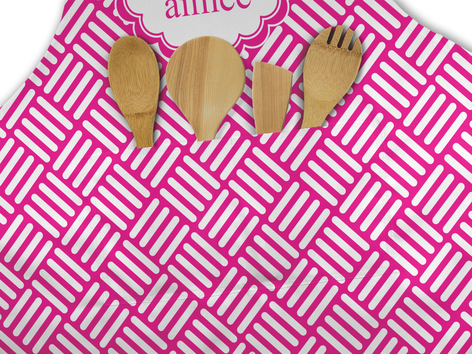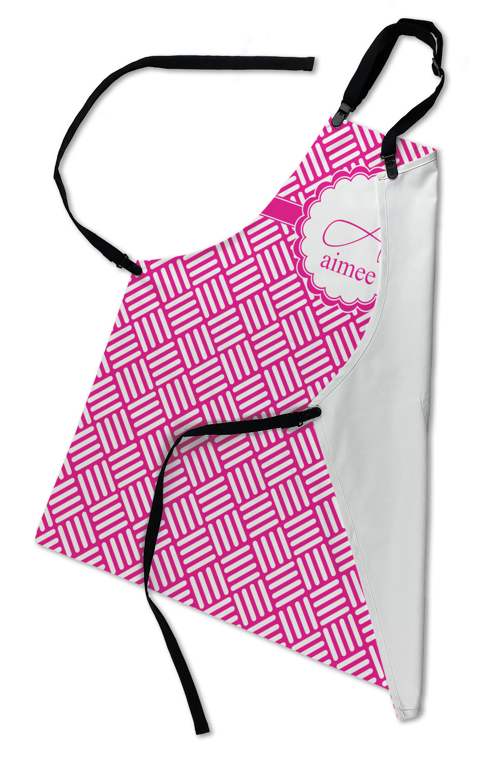 Our aprons are a lightweight yet durable polyester material. We offer two styles of aprons, one without pockets and one with two pockets adorning the center near the waistline. Each apron is one size* and comes with adjustable straps for both the neckline and waist. We print your custom design on the front of the apron to display your creativity!