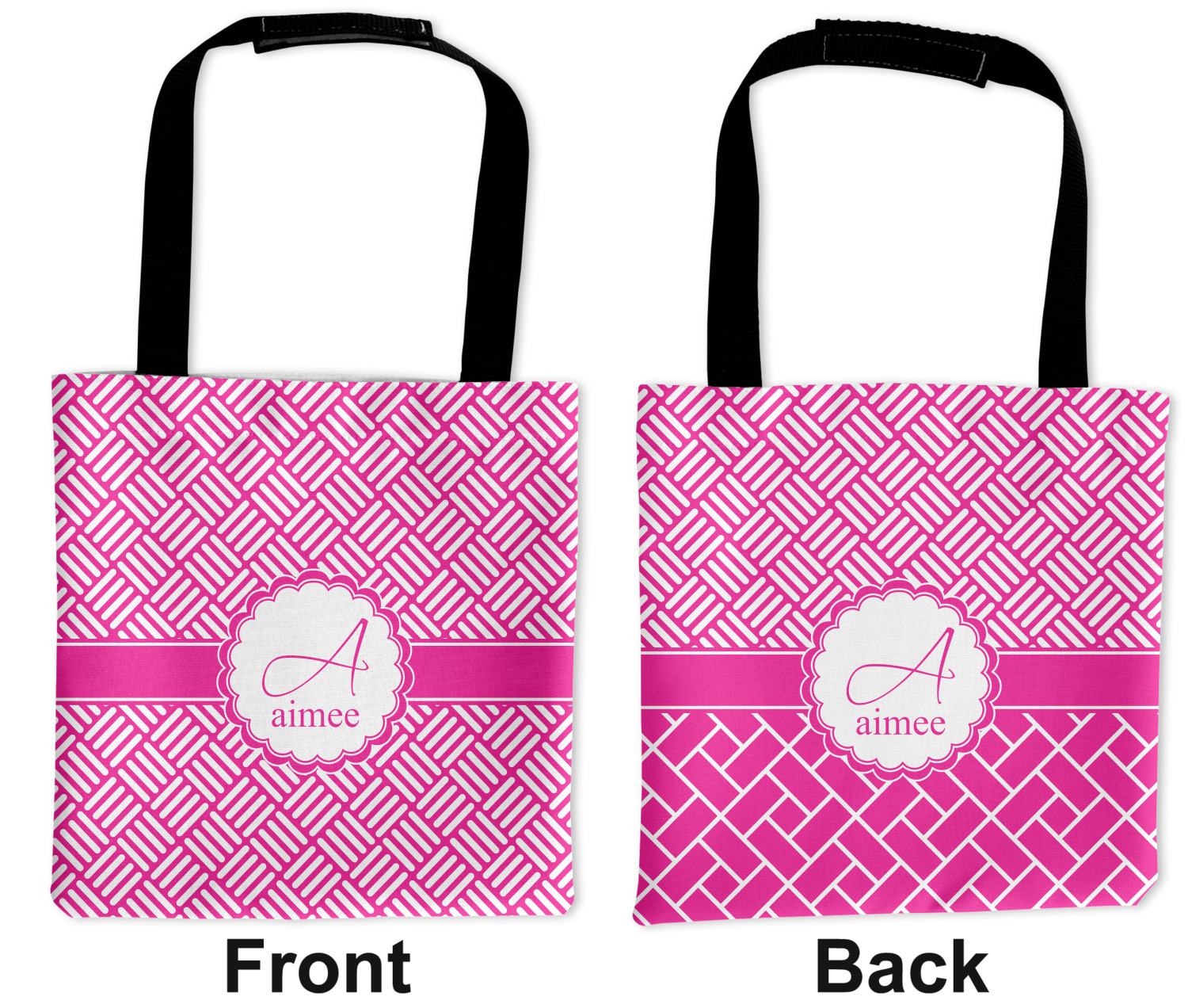 In honor of social media's latest fad, we have named this retro stripes design, "Hashtag." Featuring white stripes set at 90° angles on a hot pink background, this design celebrates both modernity and high fashion.