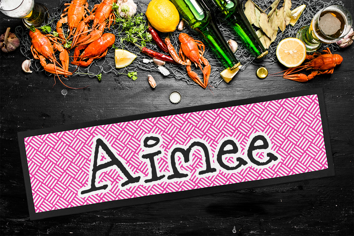 In honor of social media's latest fad, we have named this retro stripes design, "Hashtag." Featuring white stripes set at 90° angles on a hot pink background, this design celebrates both modernity and high fashion.