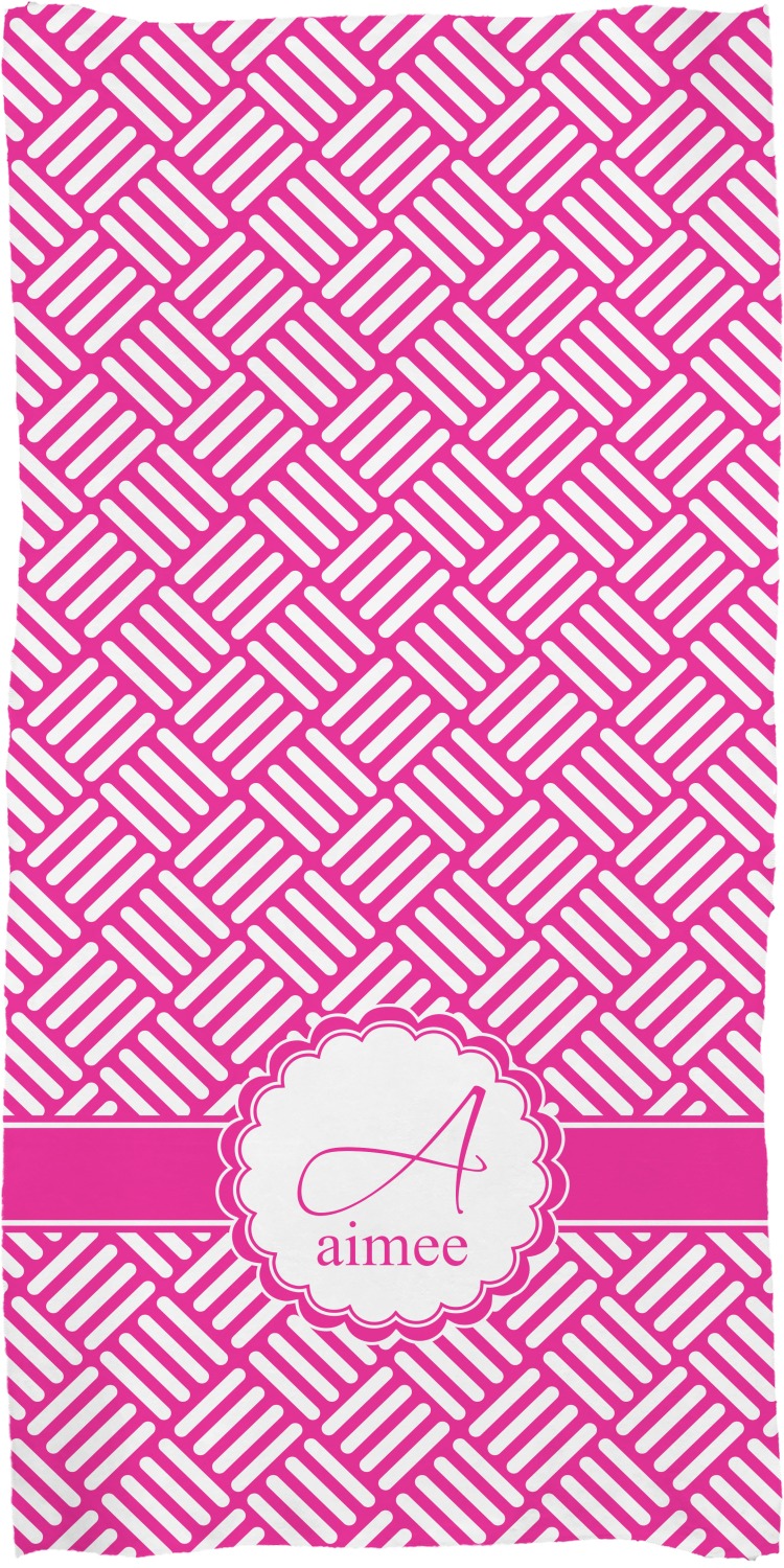In honor of social media's latest fad, we have named this retro stripes design, "Hashtag." Featuring white stripes set at 90° angles on a hot pink background, this design celebrates both modernity and high fashion.