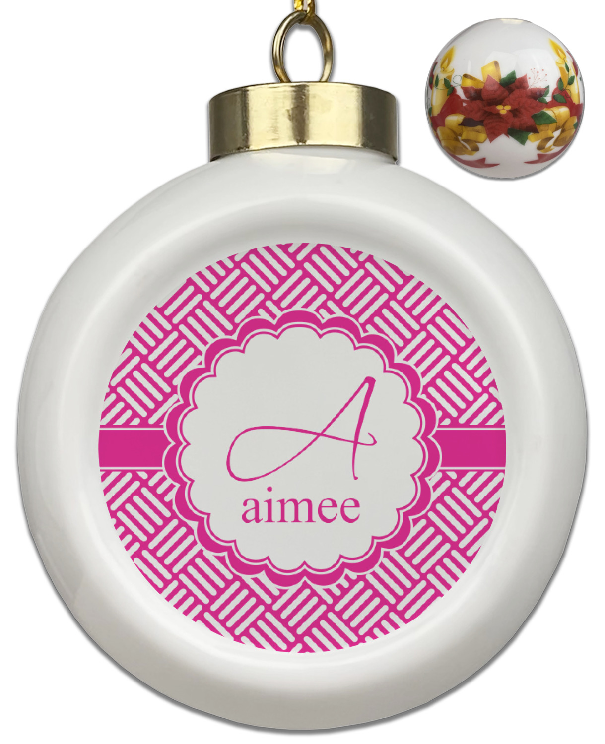 Our Christmas ornaments are a unique ceramic ball shape with a twist as it has a flat face to display your custom design! Select from one of our two design types - Christmas Tree or Poinsettia Garland - to adorn the curved back of your personal design. Each ornament measures 3H x 2.5W x 2D accompanied with a gold string accent for finishing touches to hang on your beautiful Christmas tree!