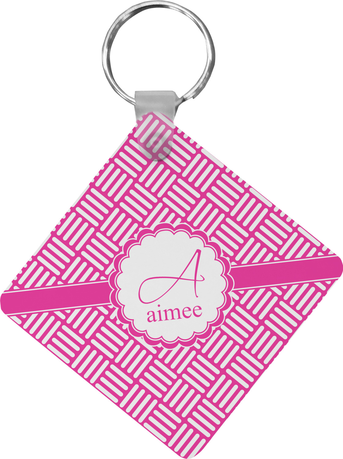 Our personalized keychains attach to the included metal, split key ring with a plastic, removable snap. Since a metal ring is included with your purchase, you have the liberty to keep your keys together on the ring, with or without your unique keychain. We offer this keychain in three different shapes: circle, heart, or diamond. We print your personalized design(s) on both sides of the key chain, and the surface has a glossy, reflective finish that only emphasizes your design. Each keychain is approximately 2.25 by 2.25 inches.
