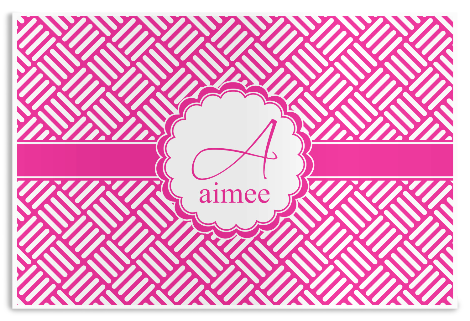 In honor of social media's latest fad, we have named this retro stripes design, "Hashtag." Featuring white stripes set at 90° angles on a hot pink background, this design celebrates both modernity and high fashion.