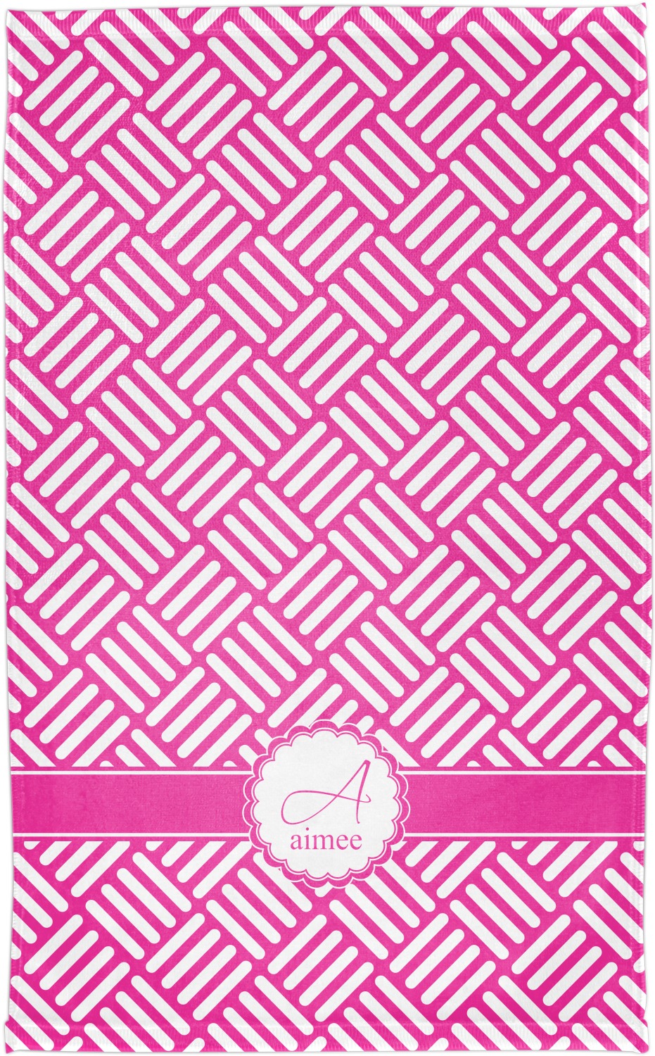 In honor of social media's latest fad, we have named this retro stripes design, "Hashtag." Featuring white stripes set at 90° angles on a hot pink background, this design celebrates both modernity and high fashion.