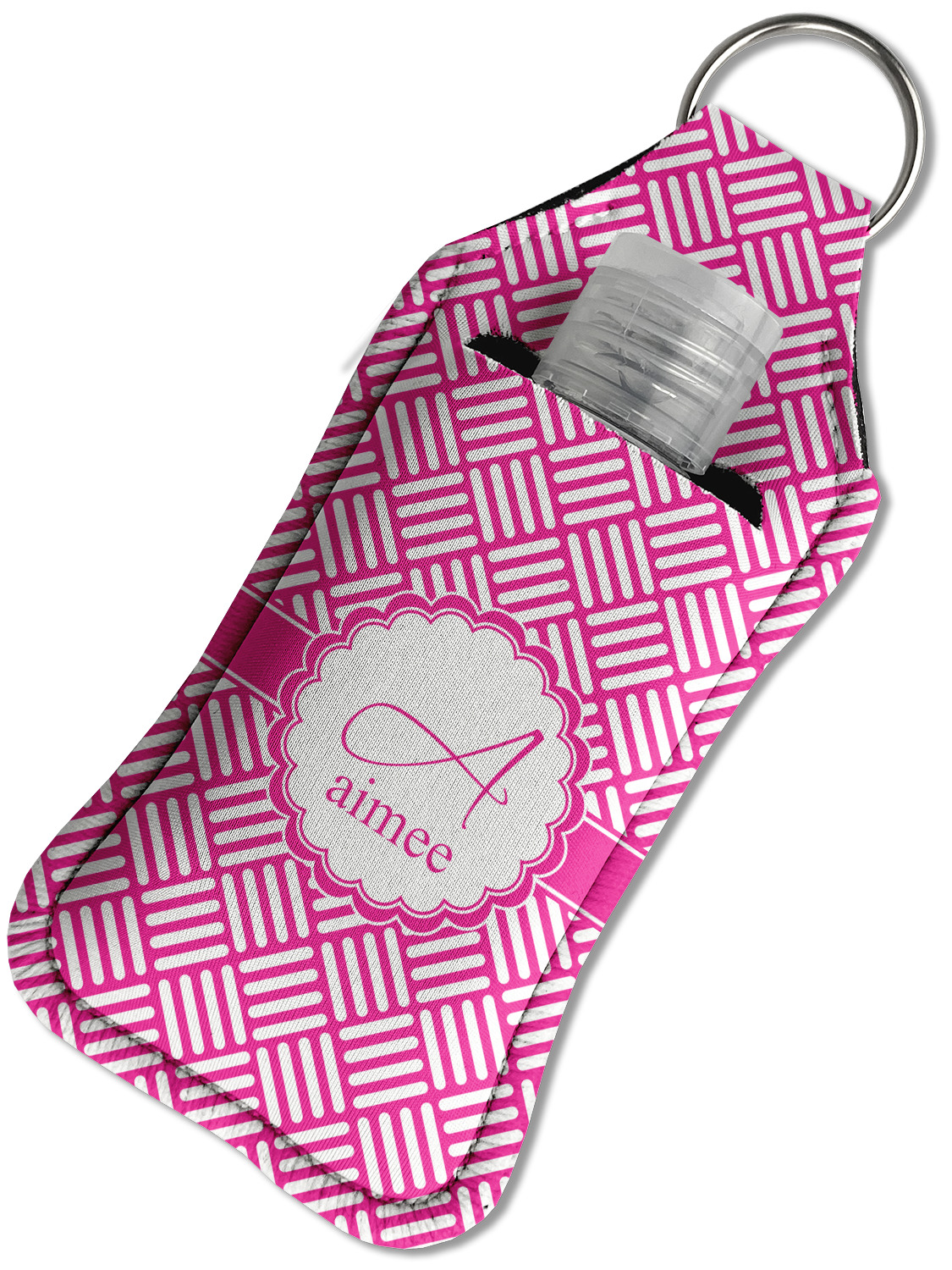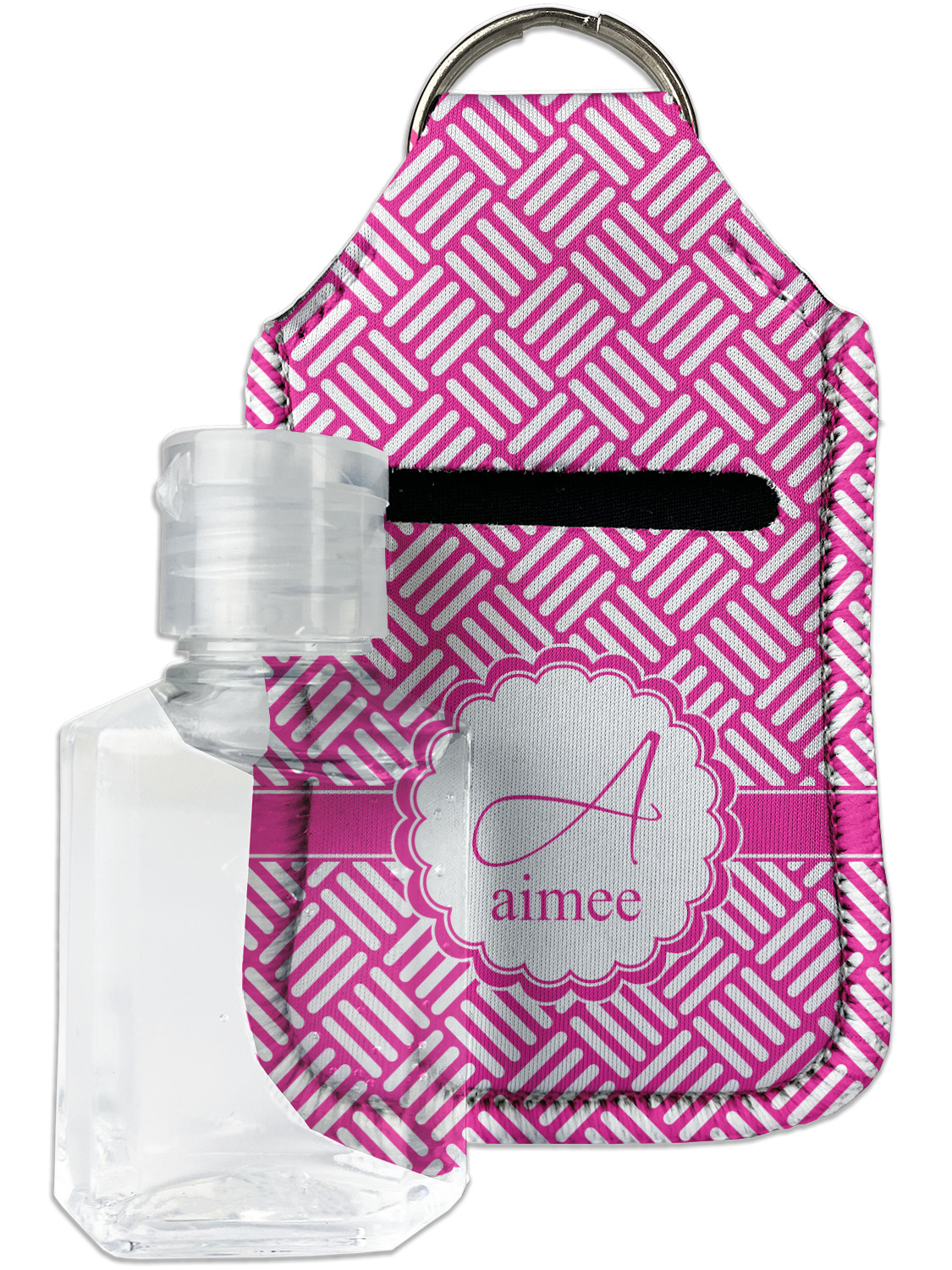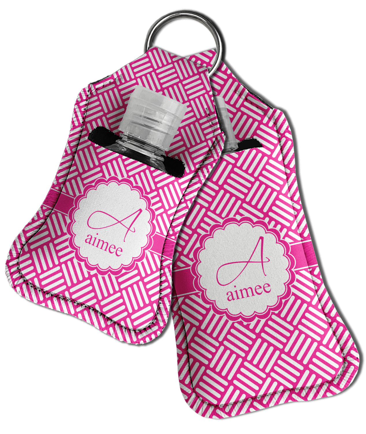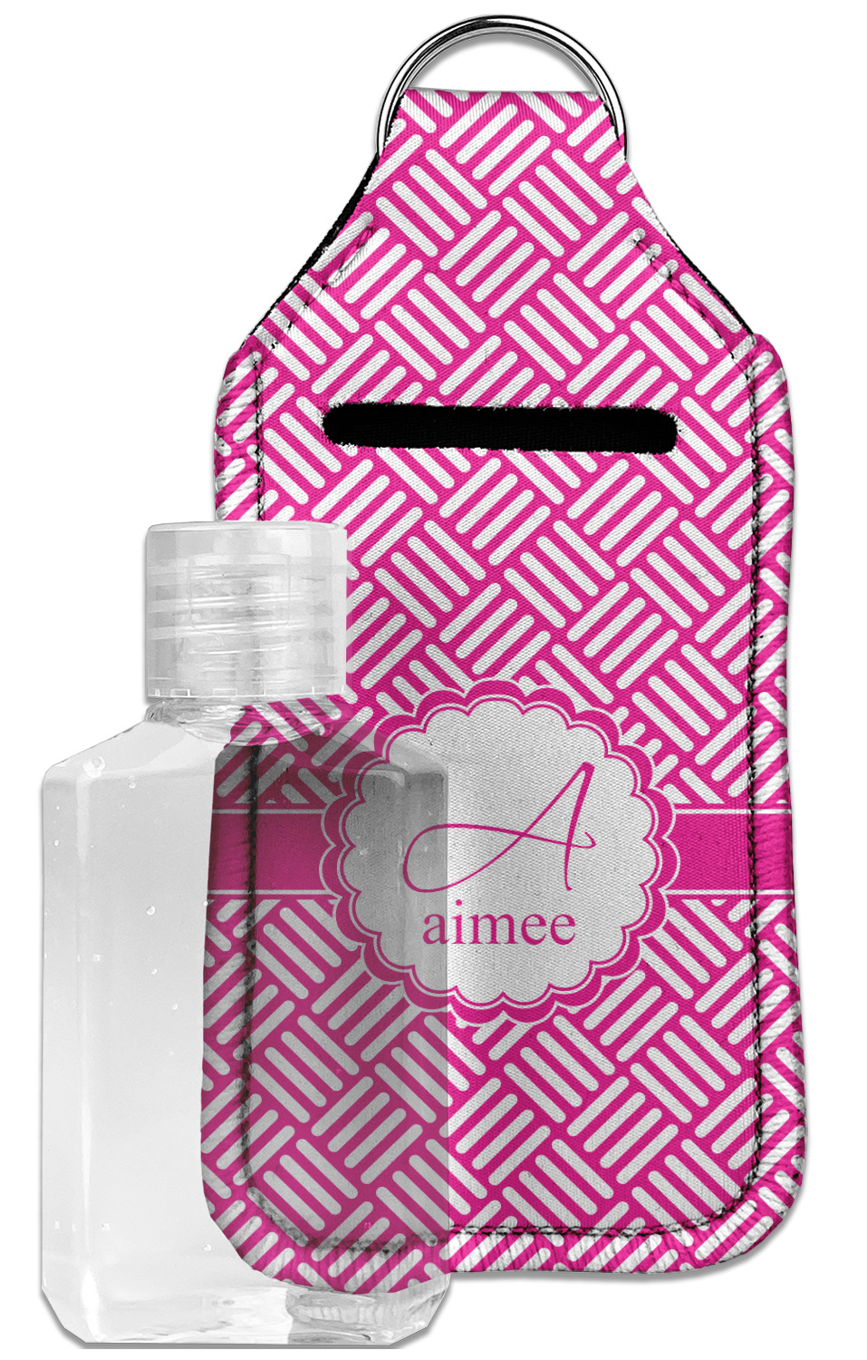 Each hand sanitizer holder comes with its own empty travel-sized, refillable hand sanitizer sure to fit snug in your customized sanitizer case! Our hand sanitizer cases are a durable, yet soft neoprene material sure to last any daily activities or travel agenda. Customize and personalize a hand sanitizer bottle holder with one of our two sizes - small (4.25" x 2.25") or large (5.5" x 2.5"). Each travel sanitizer holder comes with a keyring for attachment on bags, keys, or more!