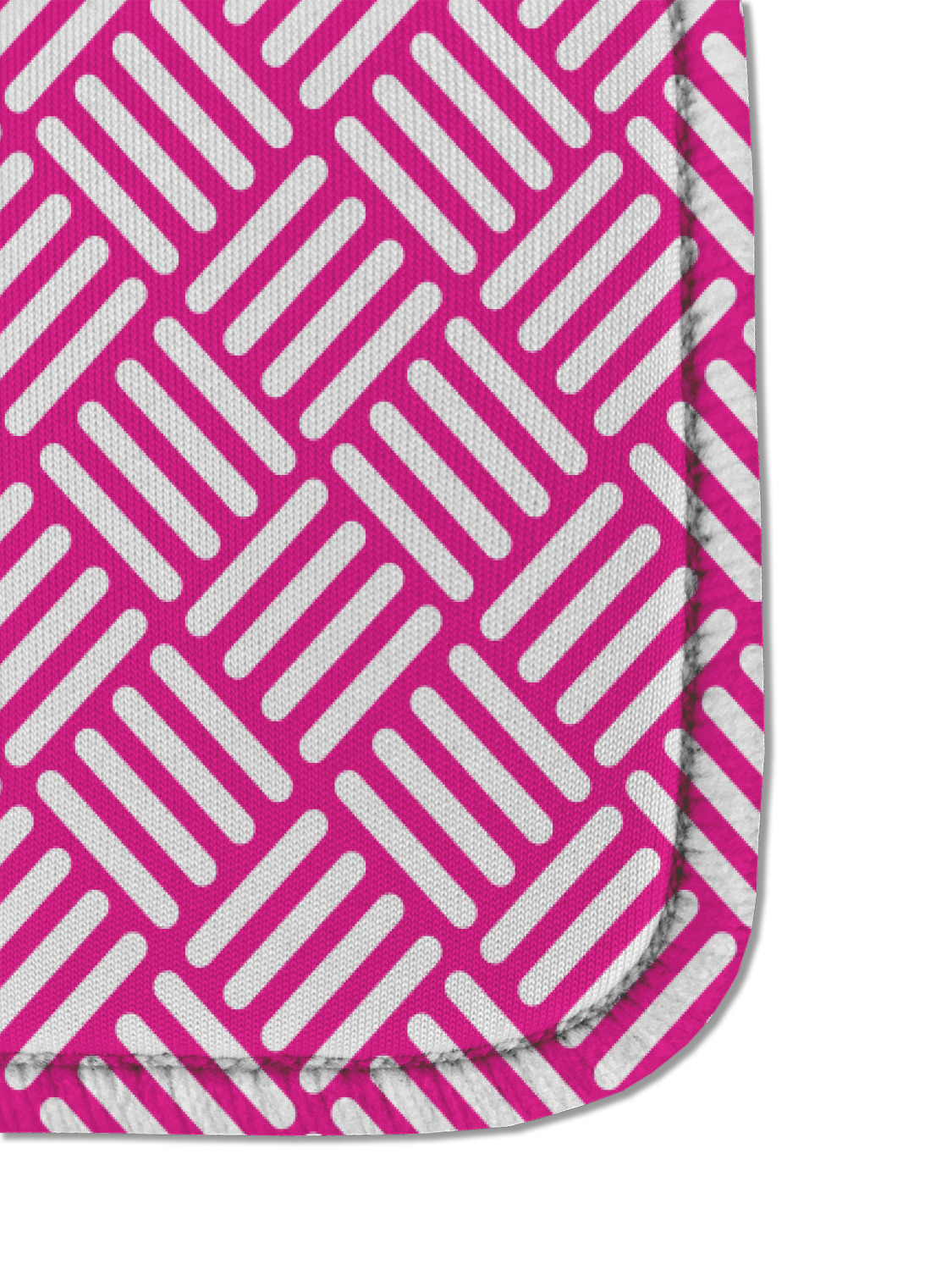 In honor of social media's latest fad, we have named this retro stripes design, "Hashtag." Featuring white stripes set at 90° angles on a hot pink background, this design celebrates both modernity and high fashion.